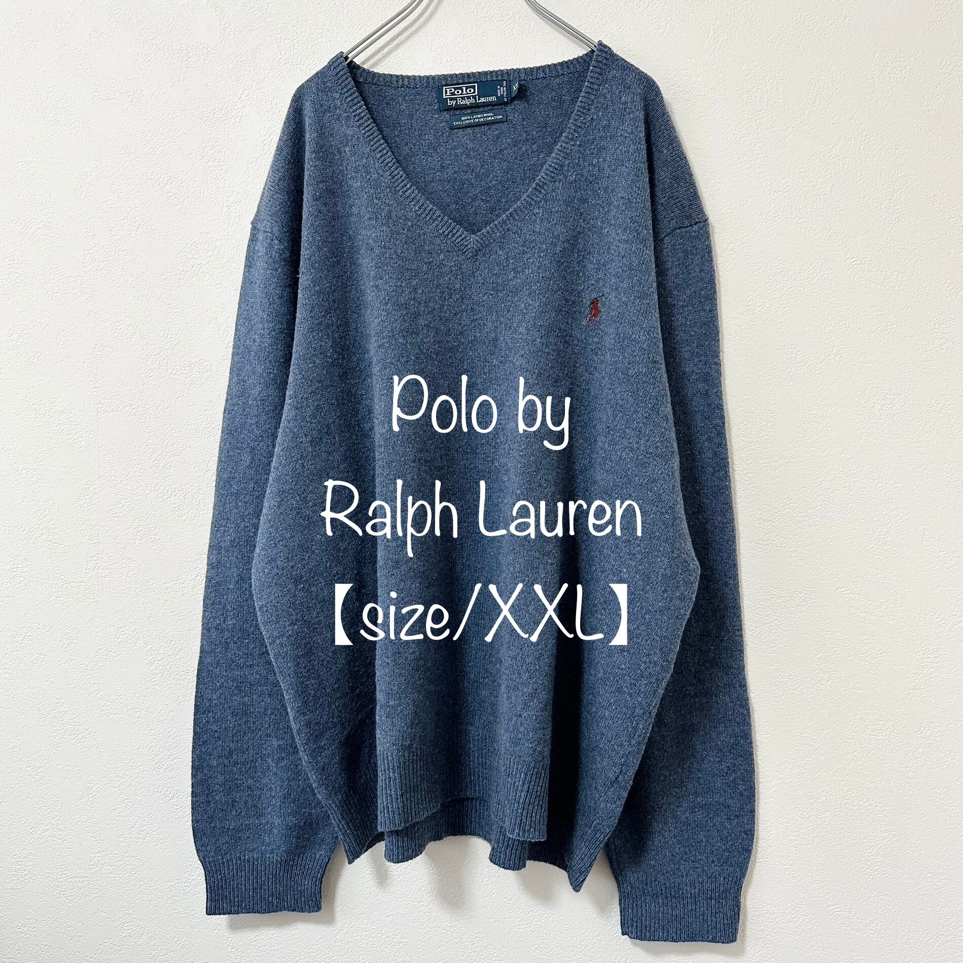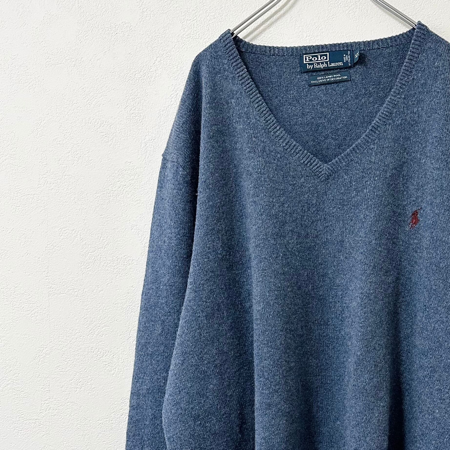 Polo Ralph Lauren/ポロ ラルフローレン★ラムウール100%★ニット/セーター★Vネック★くすみ系★ブルー/ネイビー★青/紺★XXL