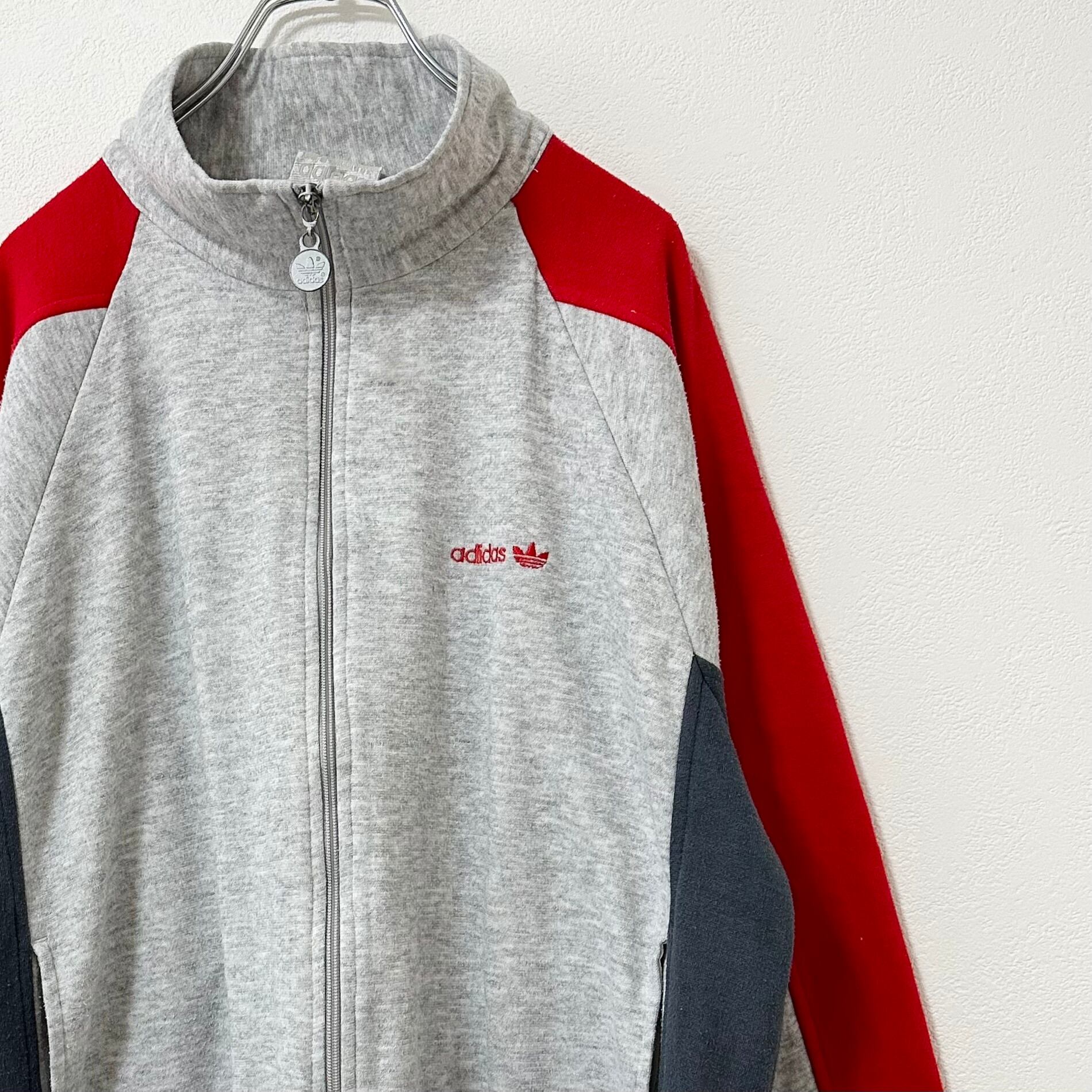 adidas/アディダス★80s★トラックジャケット/スウェットジャージ★グレー×レッド/赤★M
