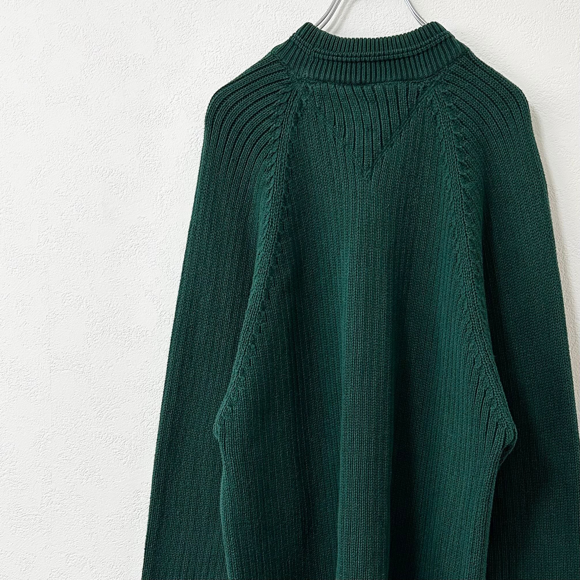 TOMMY HILFIGER/トミーヒルフィガー★90s★オールドロゴ刺繍★ニット・セーター★グリーン/緑★XL