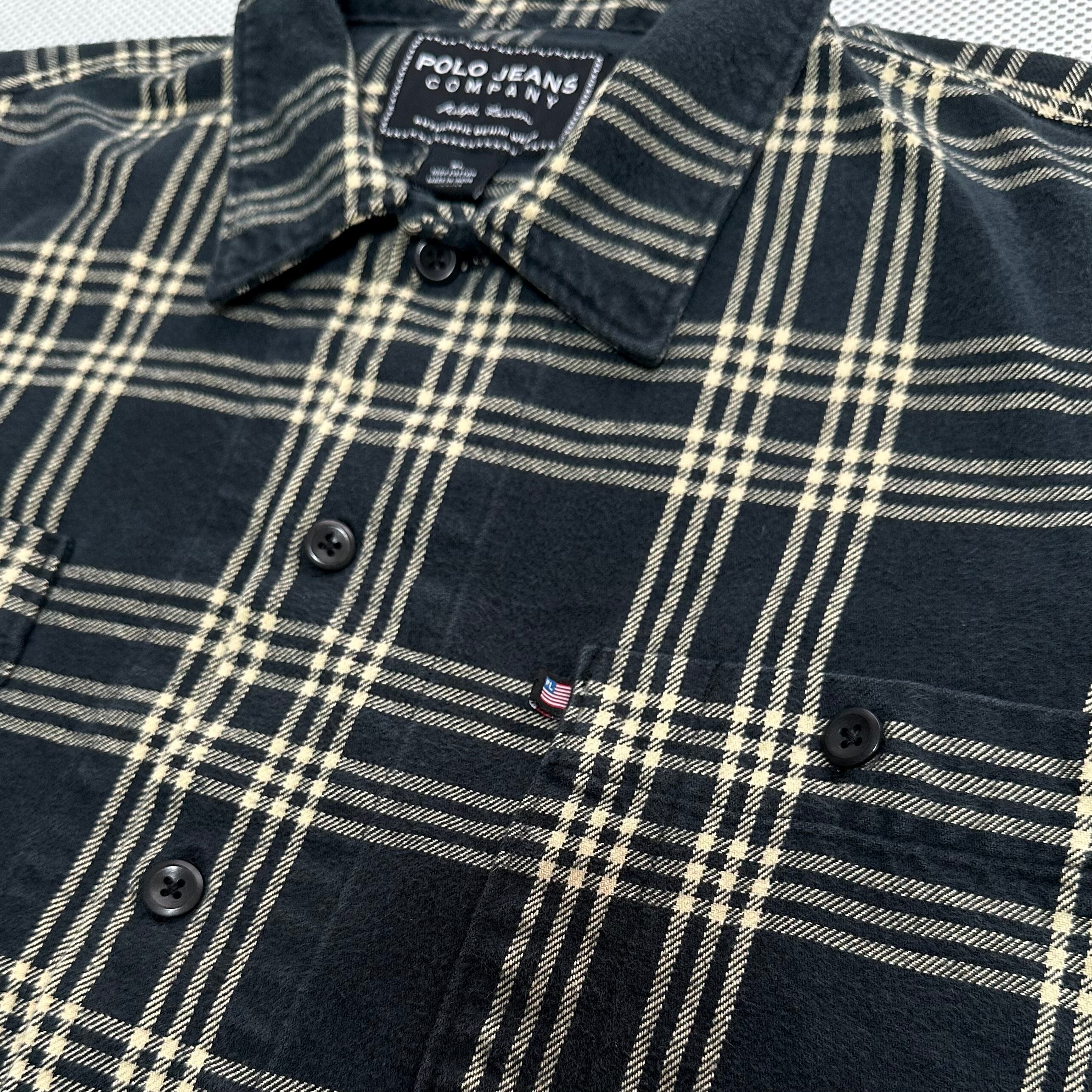 RALPH LAUREN/ラルフローレン★POLO JEANS/ポロジーンズ★90s★シャツジャケット★コート★チェック★ブラック/黒白★XL