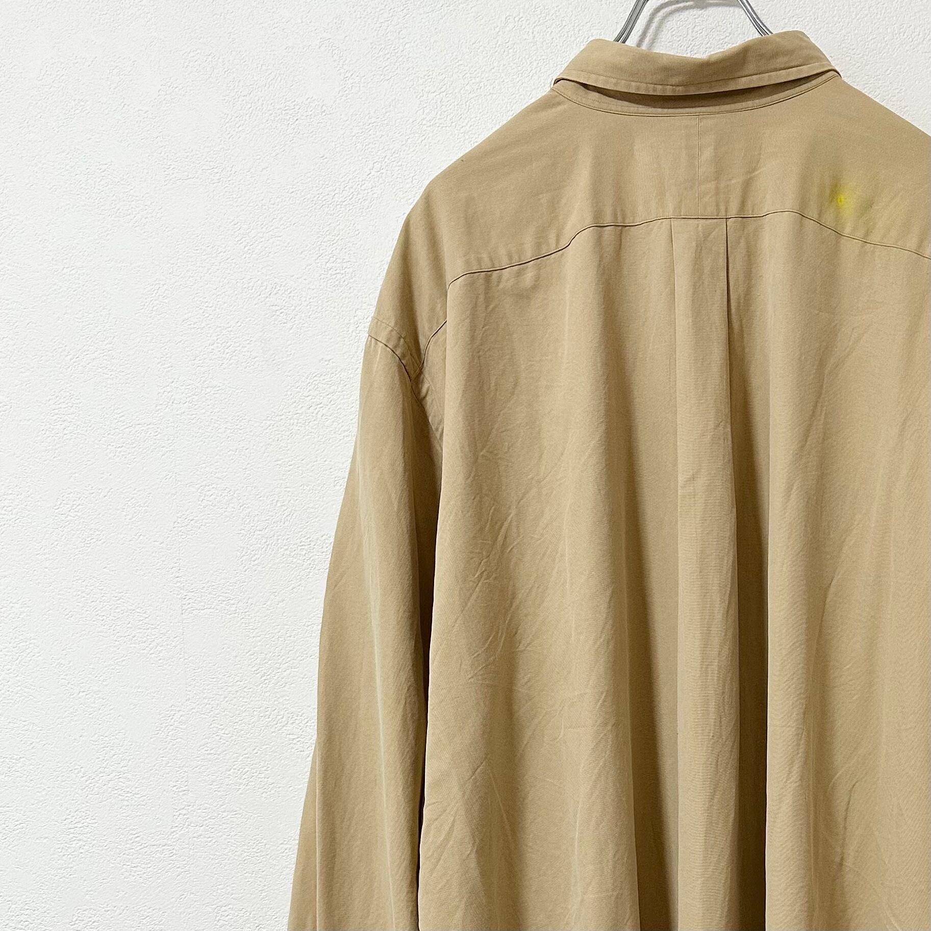 Polo Ralph Lauren/ポロラルフローレン★長袖シャツ★無地★ベージュ×グリーン/緑★超ビッグ&オーバーサイズ★2XLT ※3XL相当
