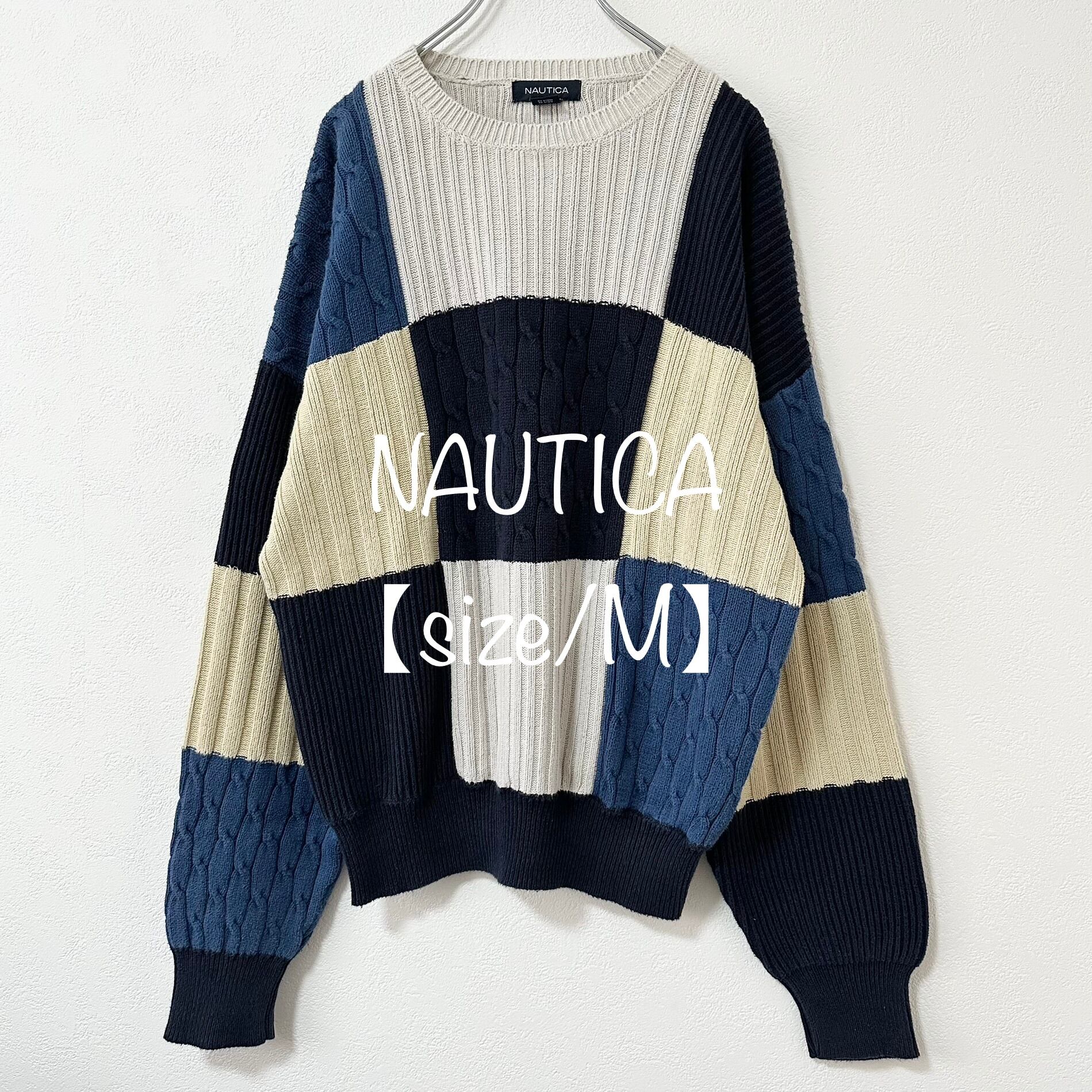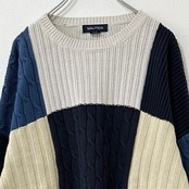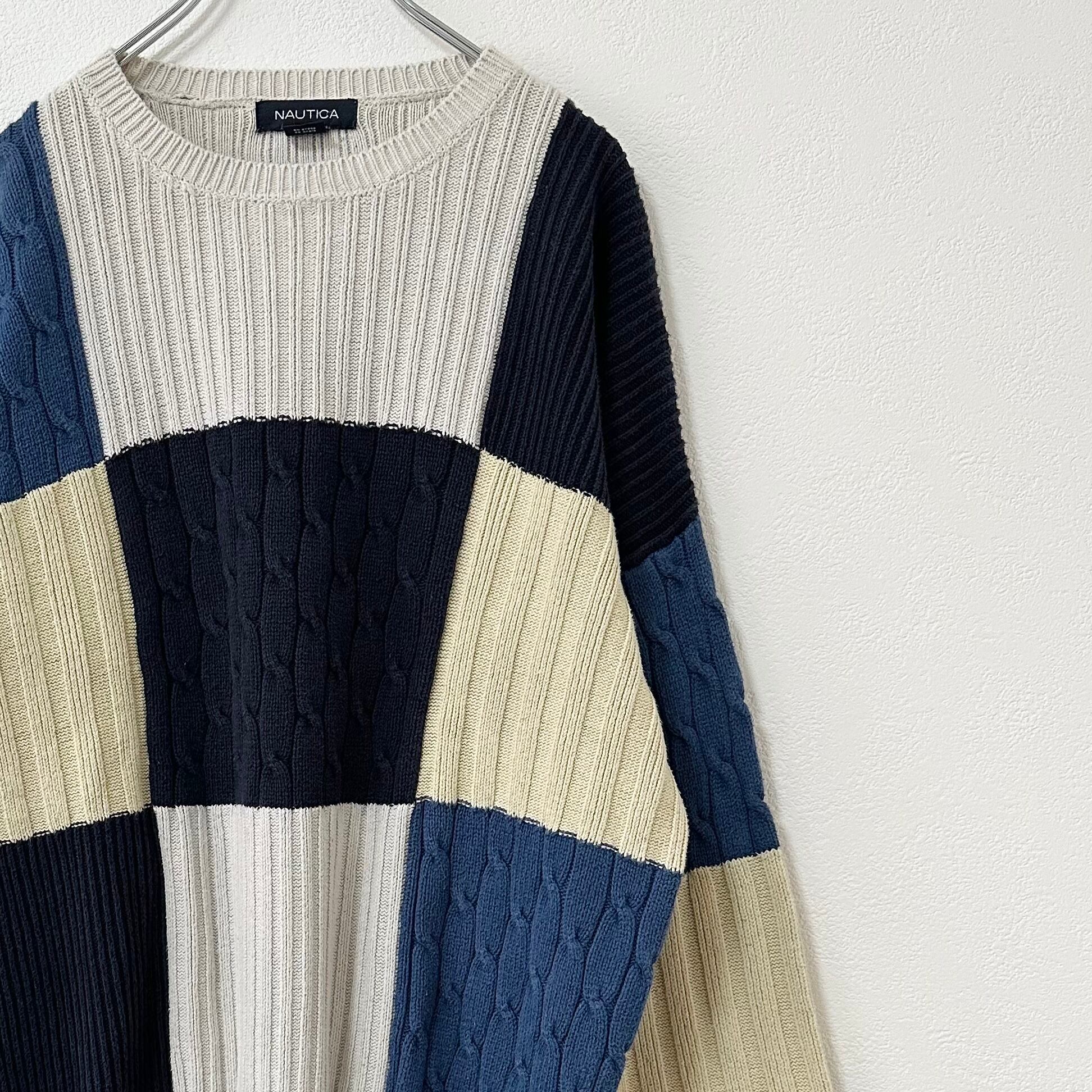 nautica/ノーティカ★ケーブルニット・セーター★パッチワーク★青紺白★ML