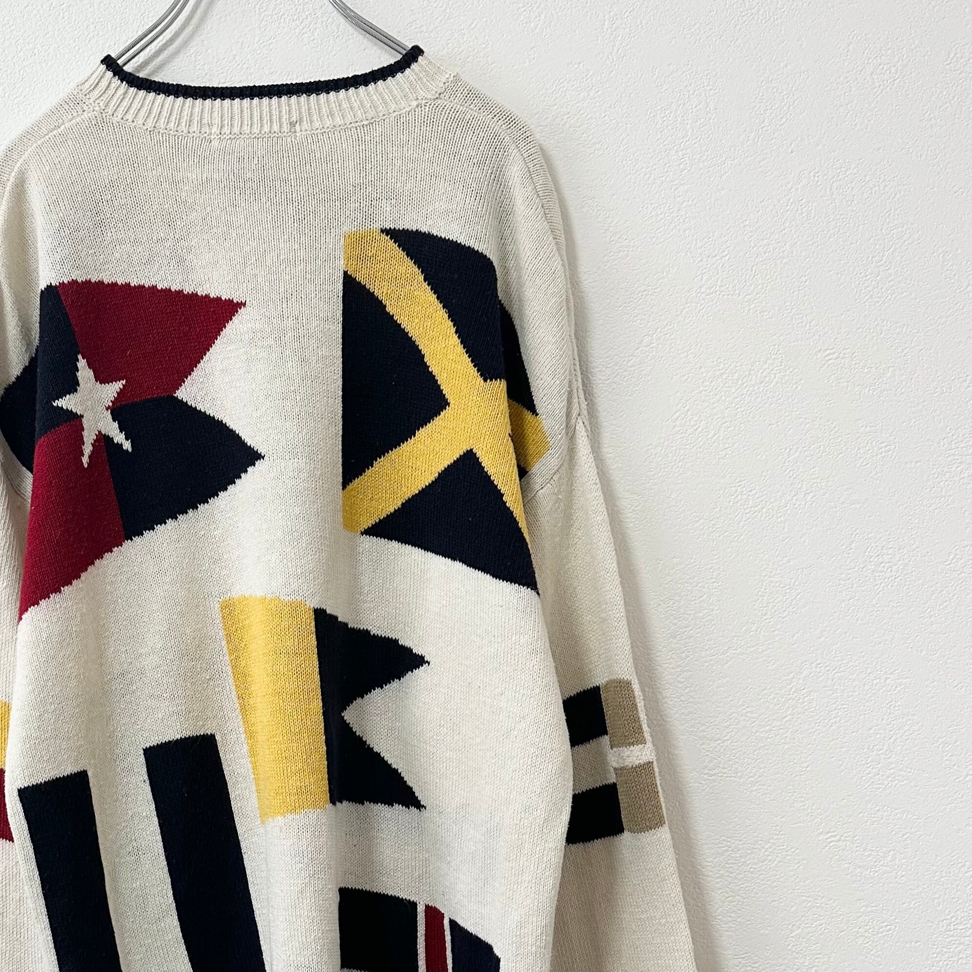 nautica/ノーティカ★80s〜90s★総柄ニット/セーター★フラッグ/国旗柄★M〜L相当