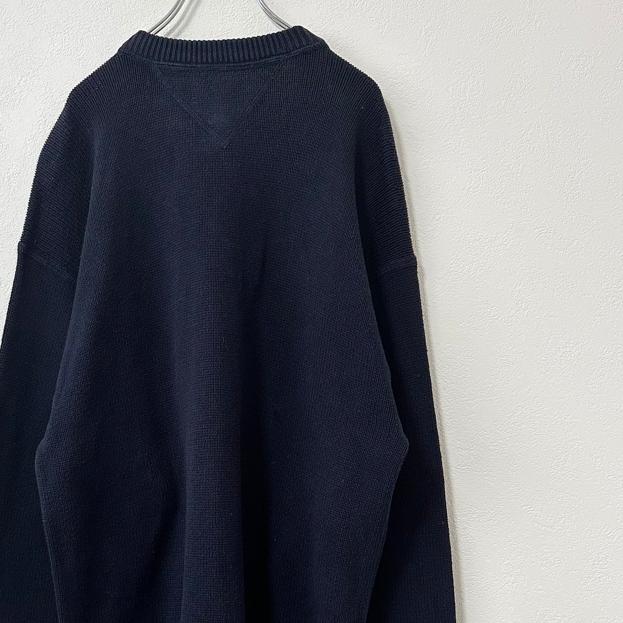 TOMMY HILFIGER/トミーヒルフィガー★90s★オールドトミー★オールドロゴ刺繍★ニット・セーター★ネイビー/紺★XL
