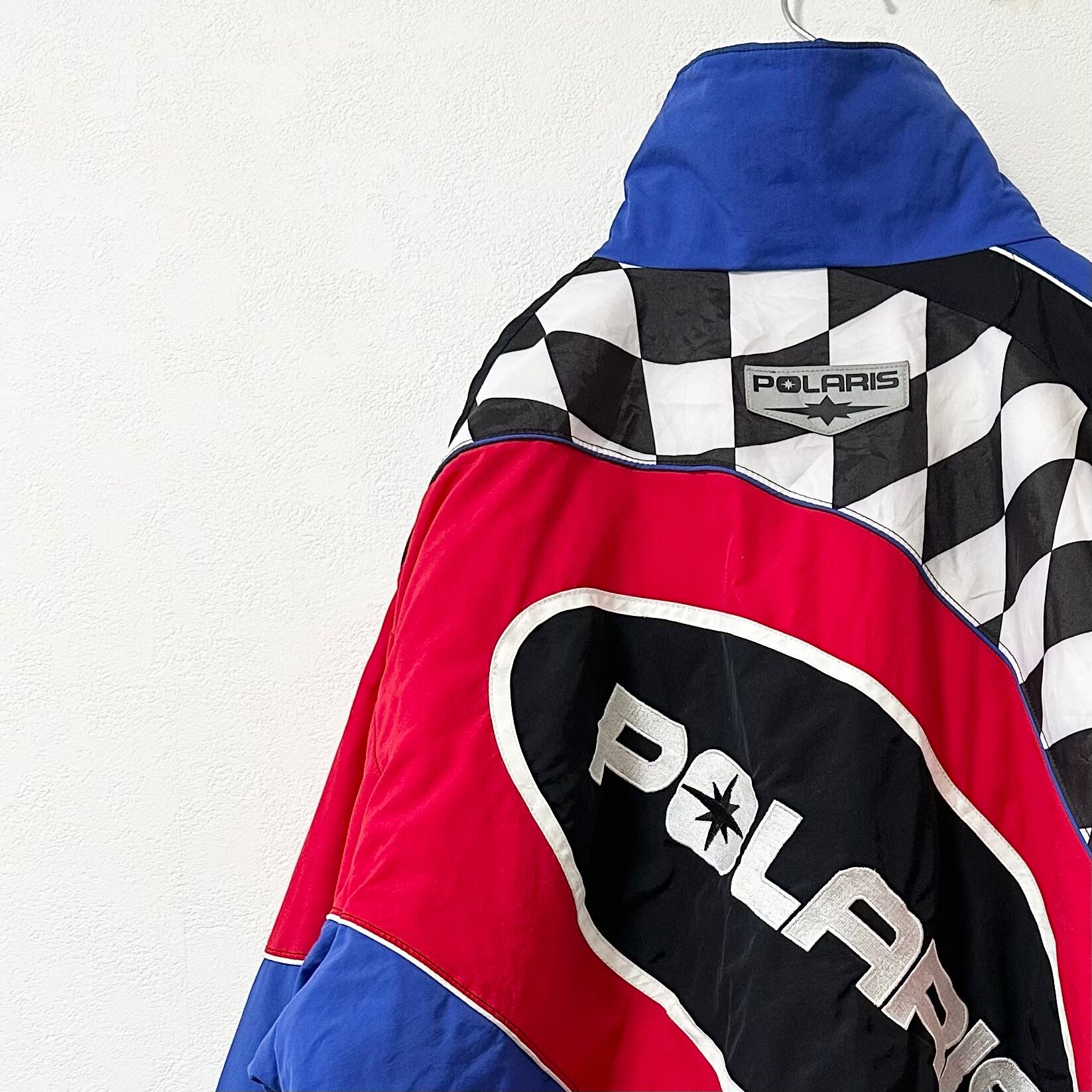 POLARIS/ポラリス★レーシングジャケット★古着★青赤白黒★チェッカーフラッグ★XL〜XXL相当