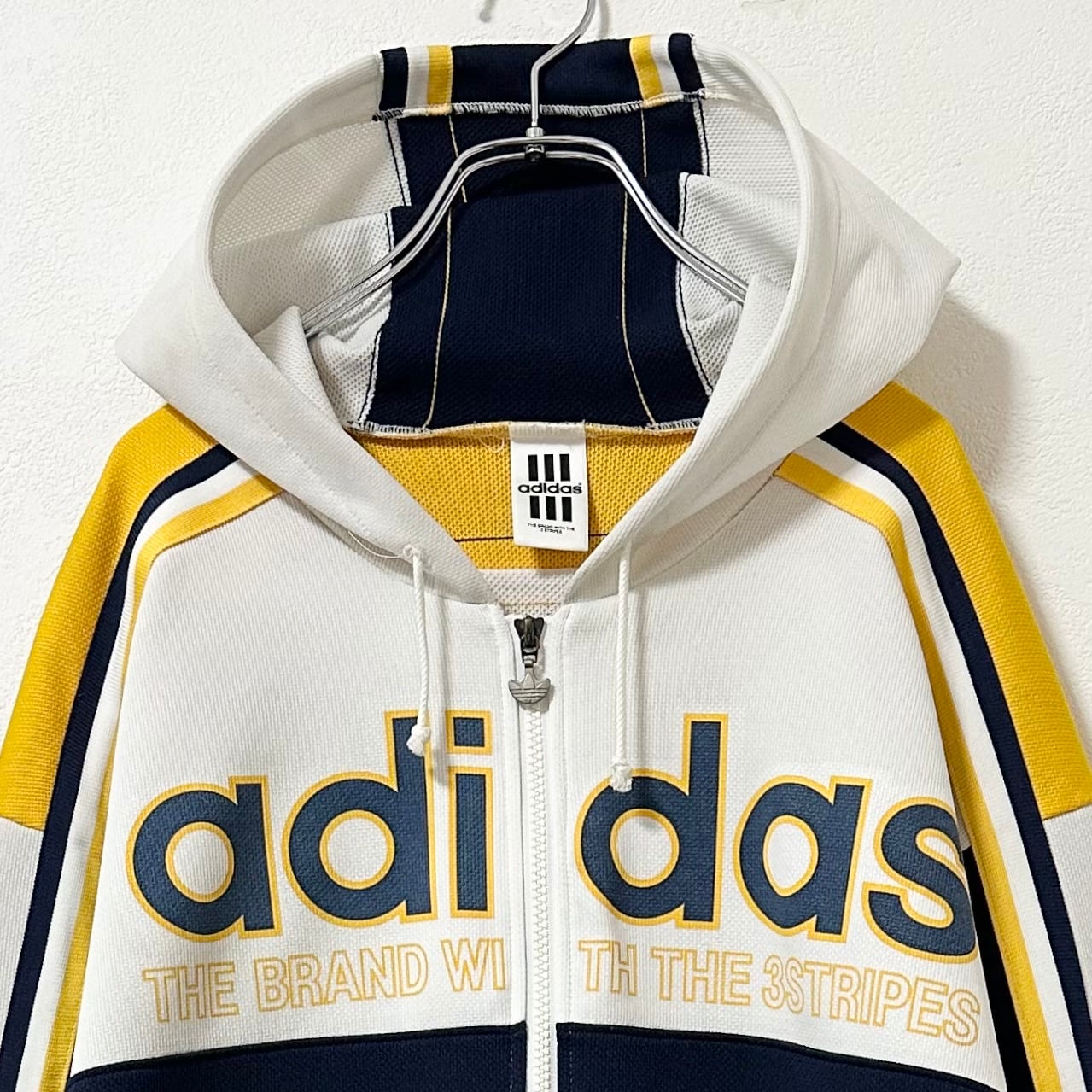 adidas×DESCENTE★アディダス×デサント★80s〜90s★ジャージ★ジップパーカー★トラックジャケット★ネイビー×イエロー×ホワイト/紺×黄×白★美品/状態良好★M-L