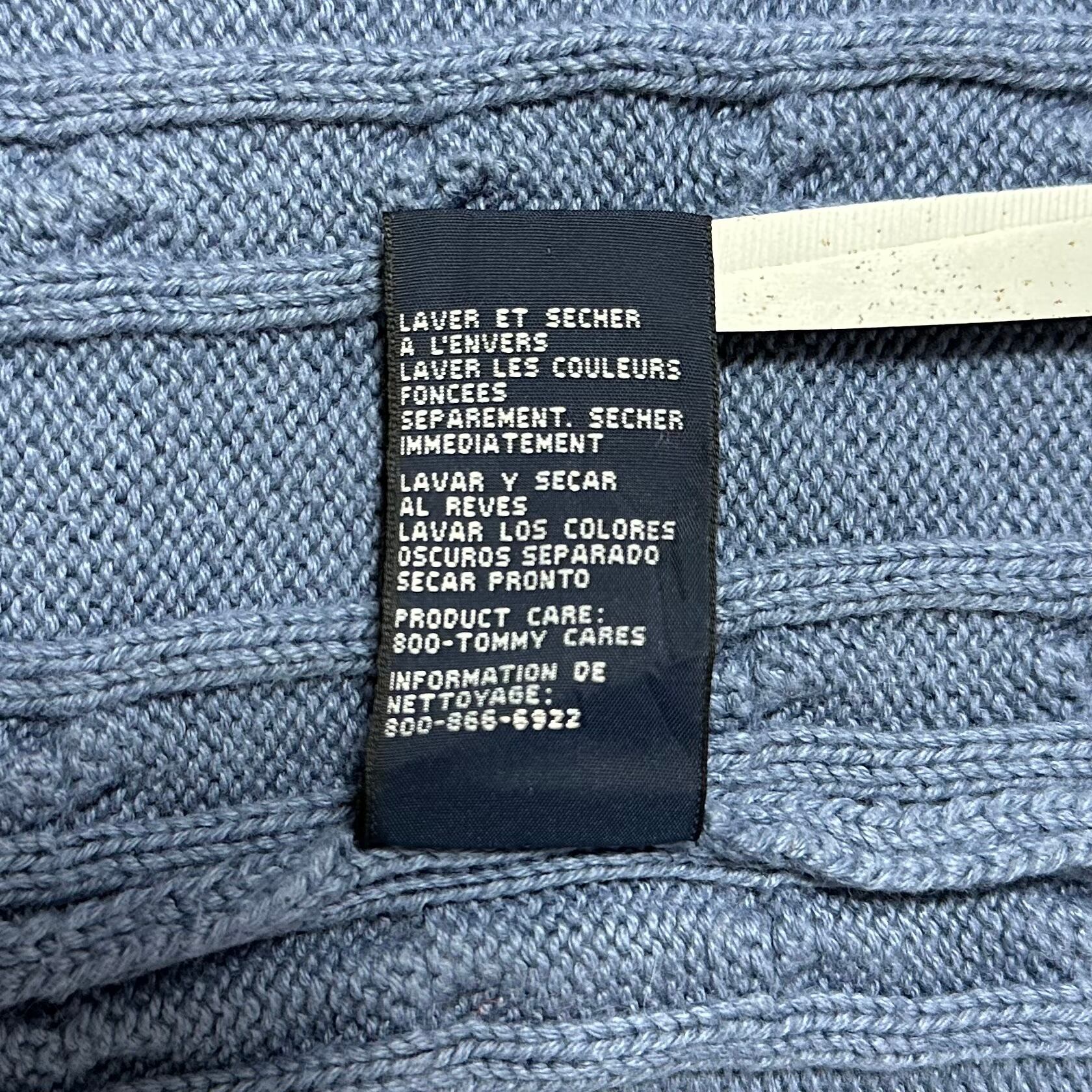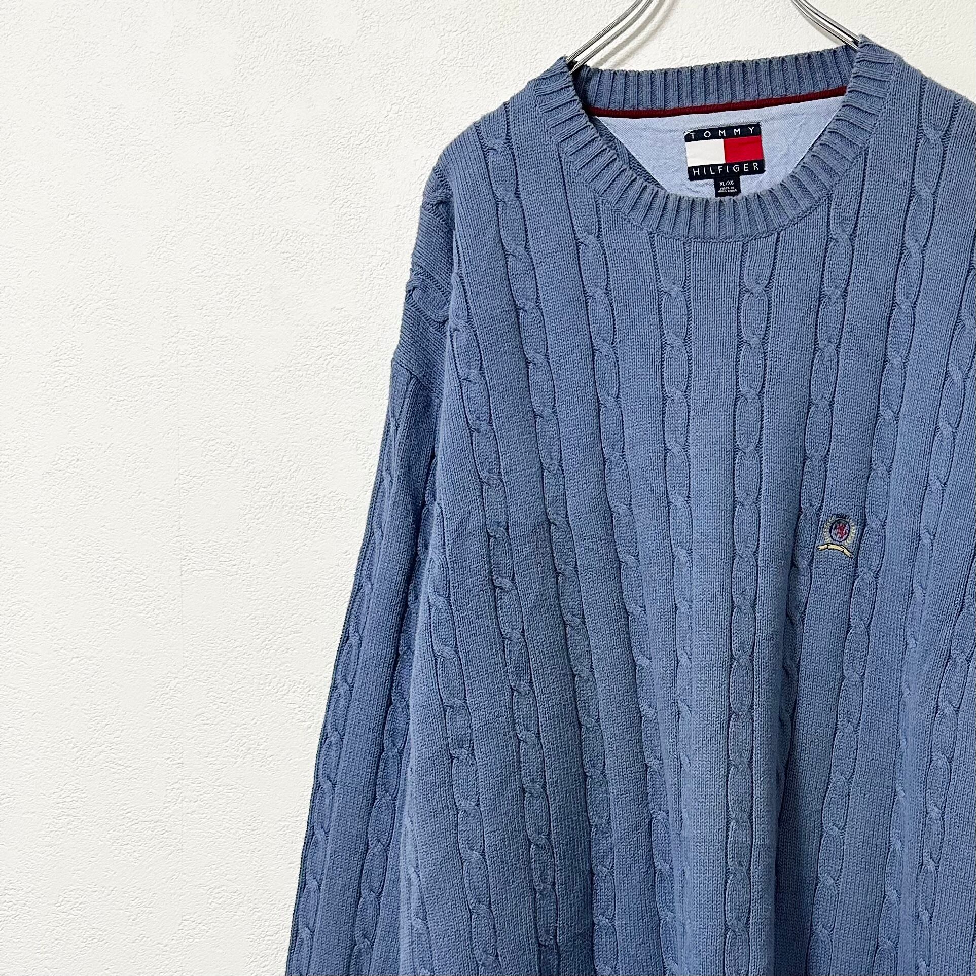 TOMMY HILFIGER/トミーヒルフィガー★90s★オールドトミー/オールドロゴ刺繍★ケーブルニット・セーター★ブルー/ライトブルー★青/水色★XL
