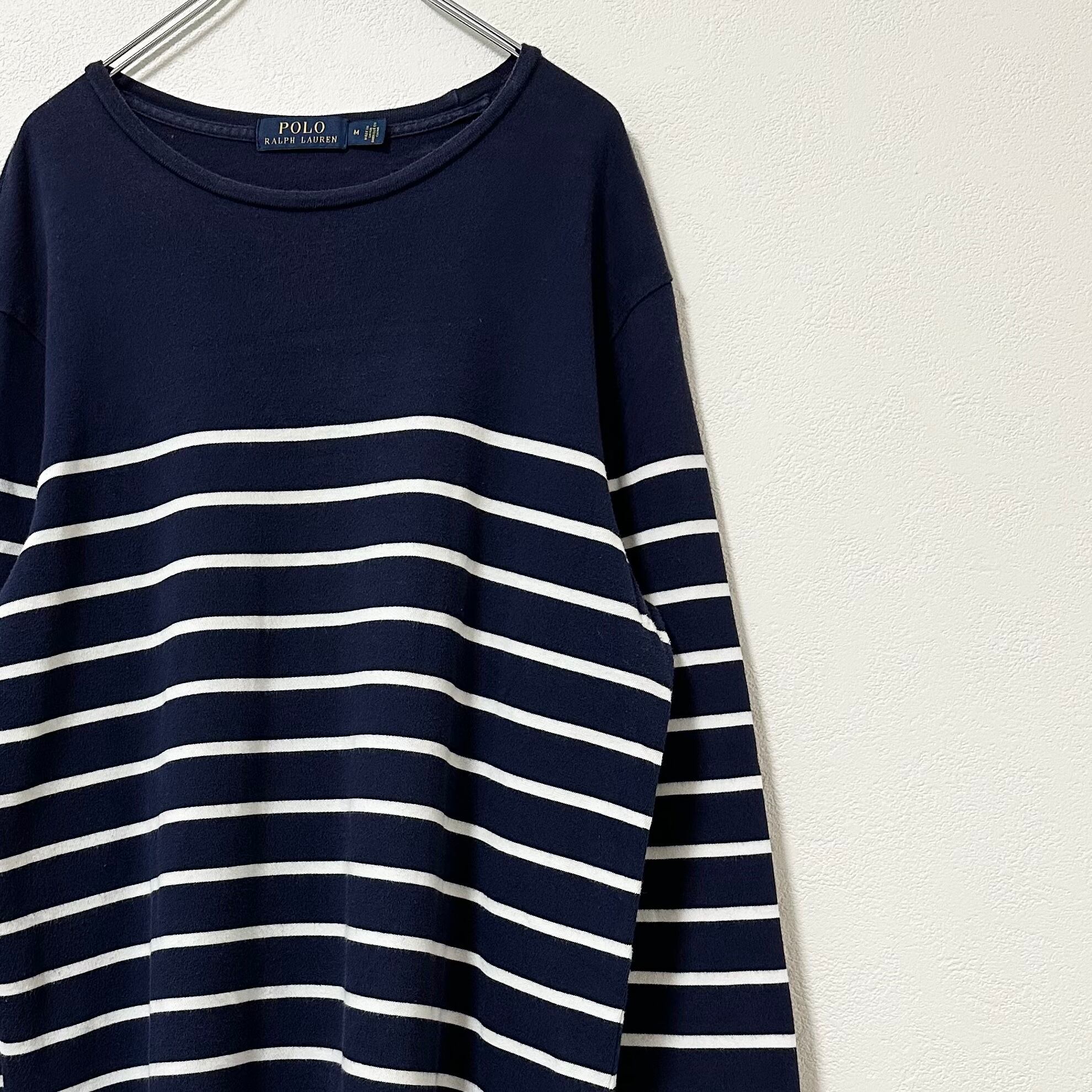 Polo Ralph Lauren/ポロ ラルフローレン★長袖Tシャツ/ロンT★ボーダー★ポートネック★裾ポニー★ネイビー×ホワイト/紺白★M