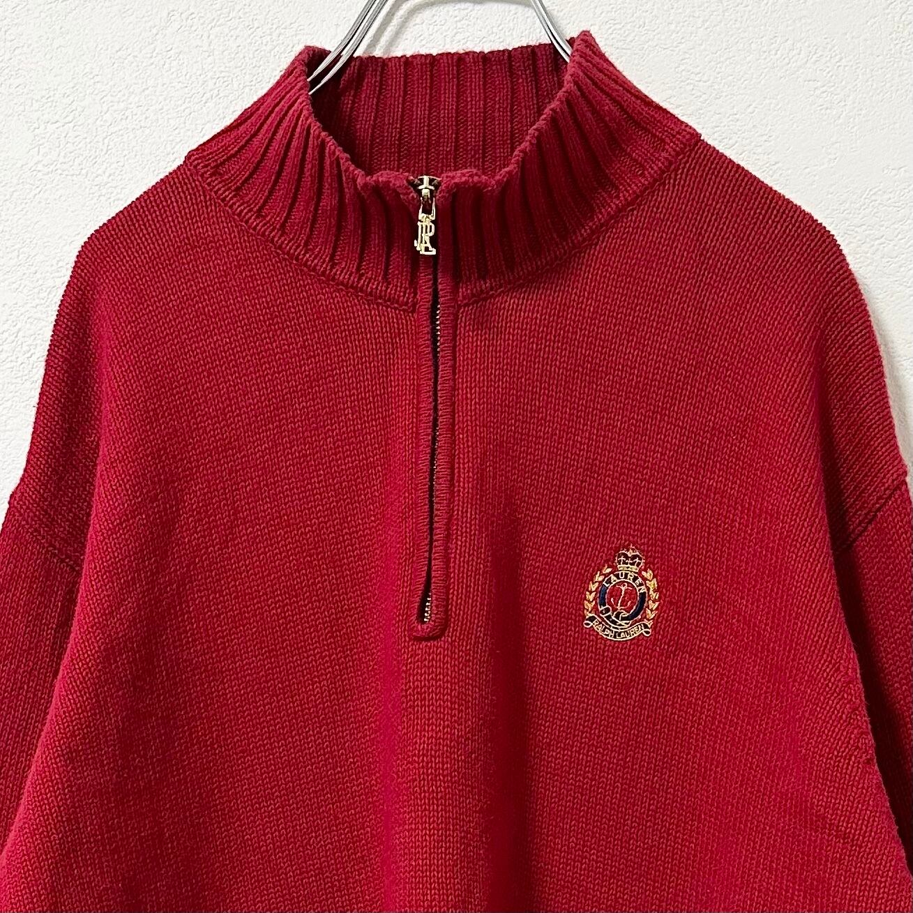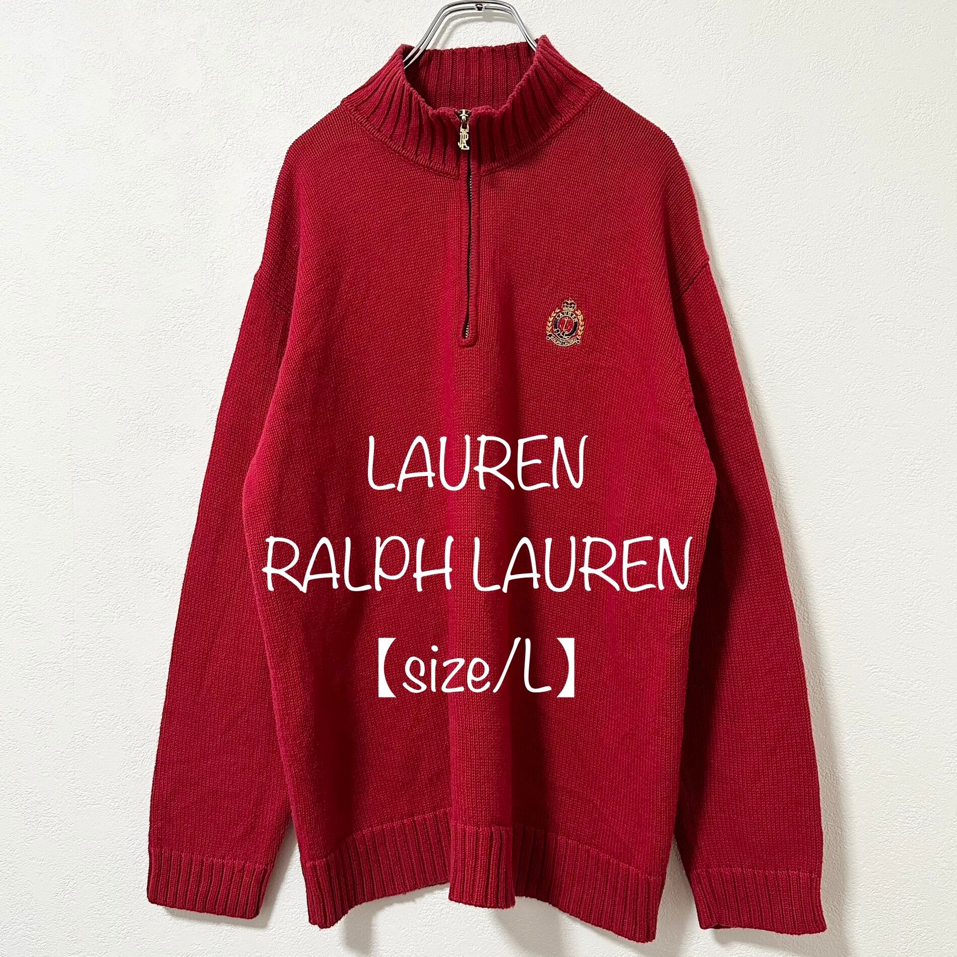 ラルフローレン★ハーフジップ★ニット・セーター★エンブレム刺繍★レッド/赤★L