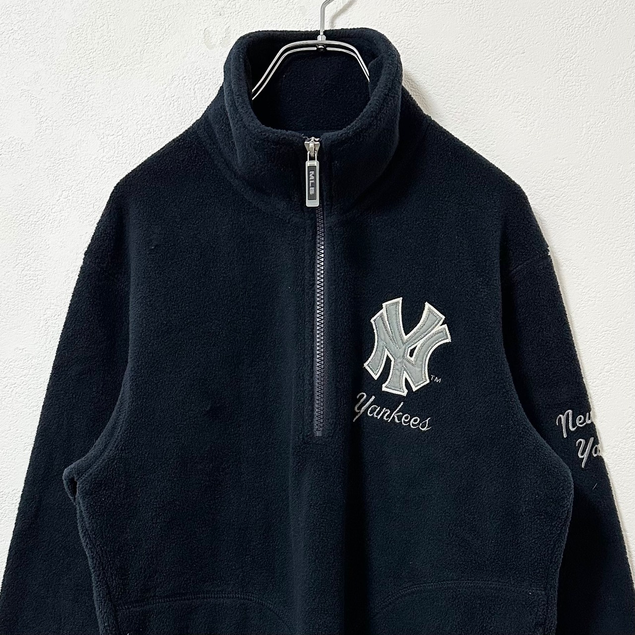 MLB★NY★New York Yankees★ニューヨーク ヤンキース★ハーフジップ★フリース★ネイビー/紺×グレー★M