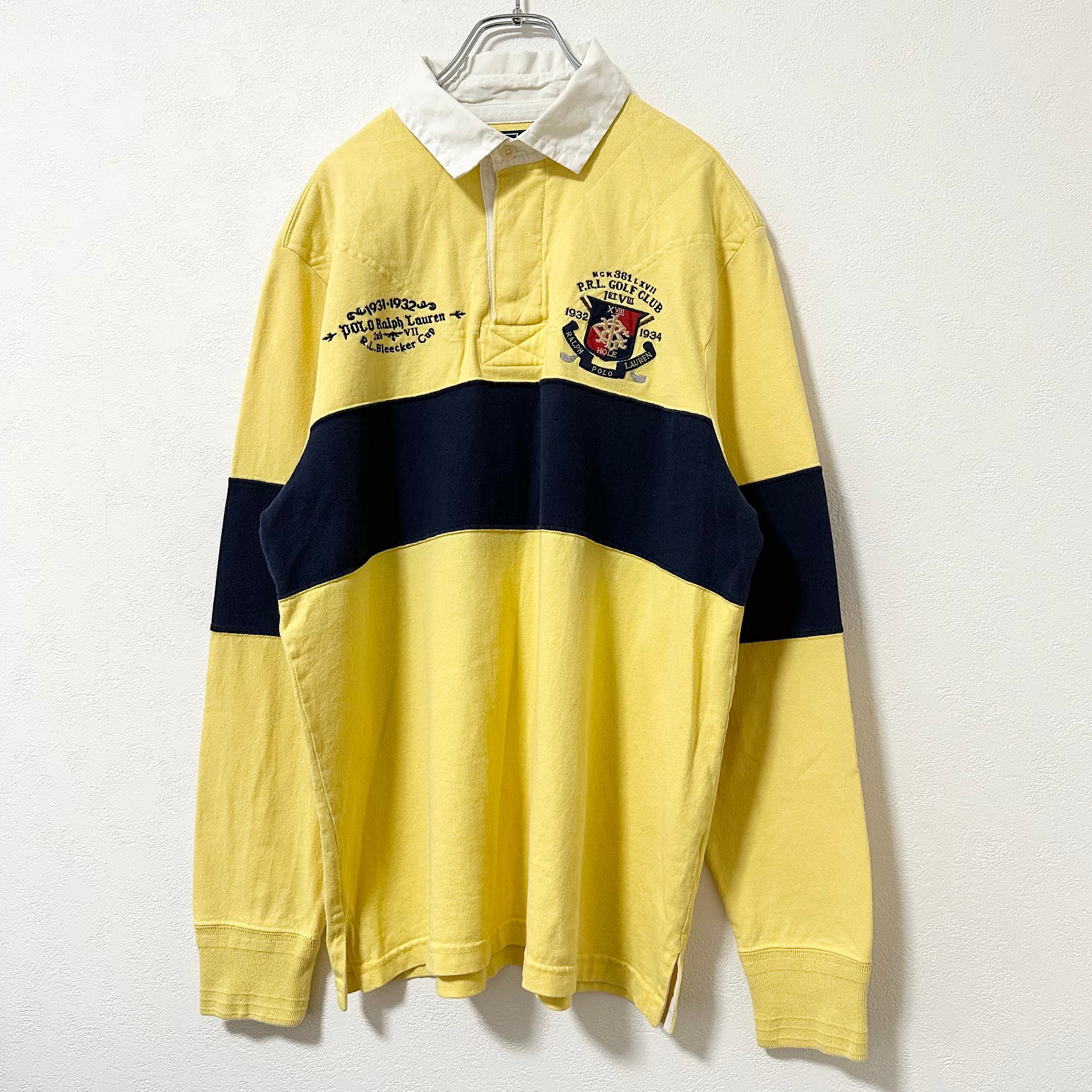 Polo by Ralph Lauren/ポロ バイ ラルフローレン★90s★ラガーシャツ★イエロー×ネイビー/黄×紺★L