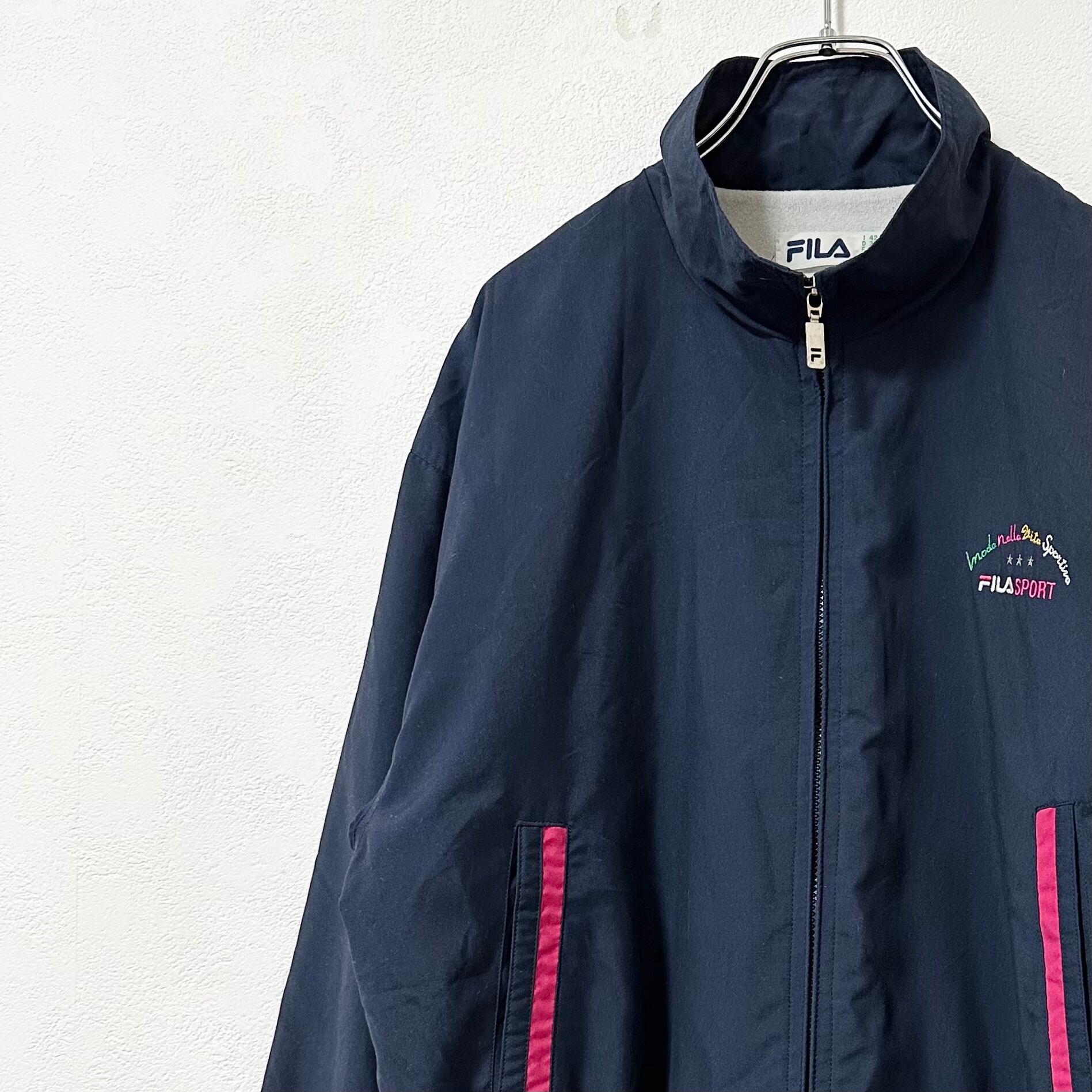 FILA/フィラ★80s〜90s★ナイロンジャケット★ネイビー/紺×ピンク★L