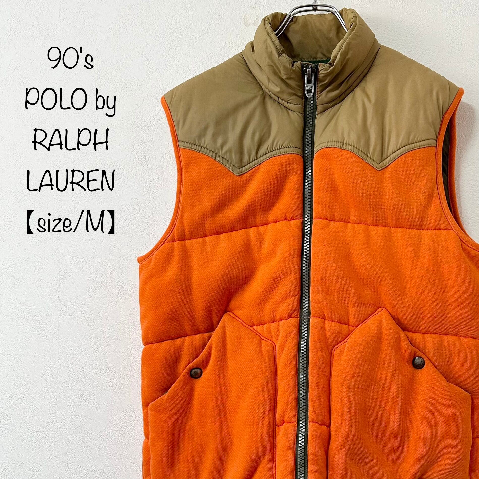 美品★90s★Polo by Ralph Lauren/ポロ バイ ラルフローレン★ダウンベスト★オレンジ×ベージュ/カーキ系★M