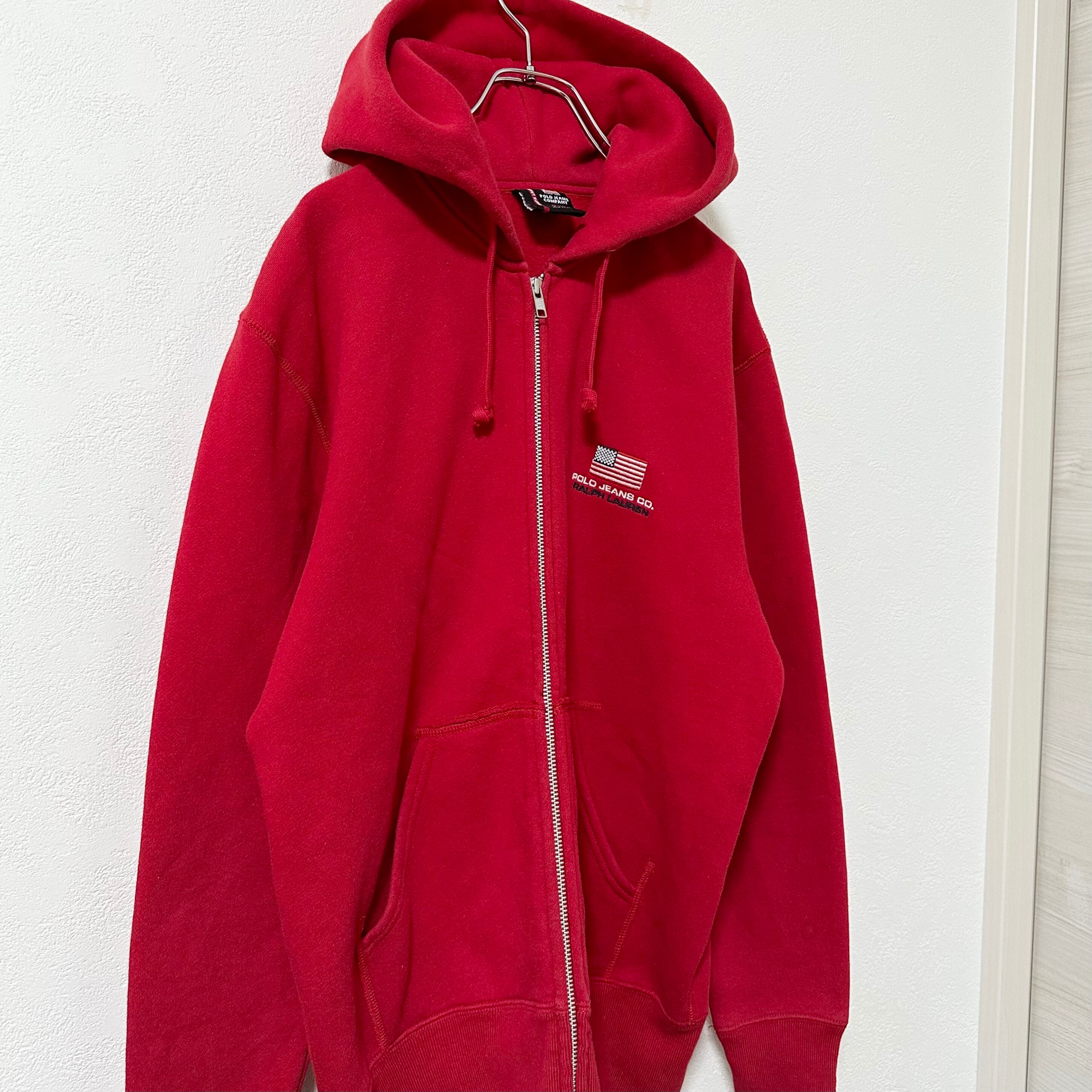 Polo Jeans Ralph Lauren★ポロジーンズ ラルフローレン★90s★スウェットジップパーカー★星条旗/USA★レッド/赤★M