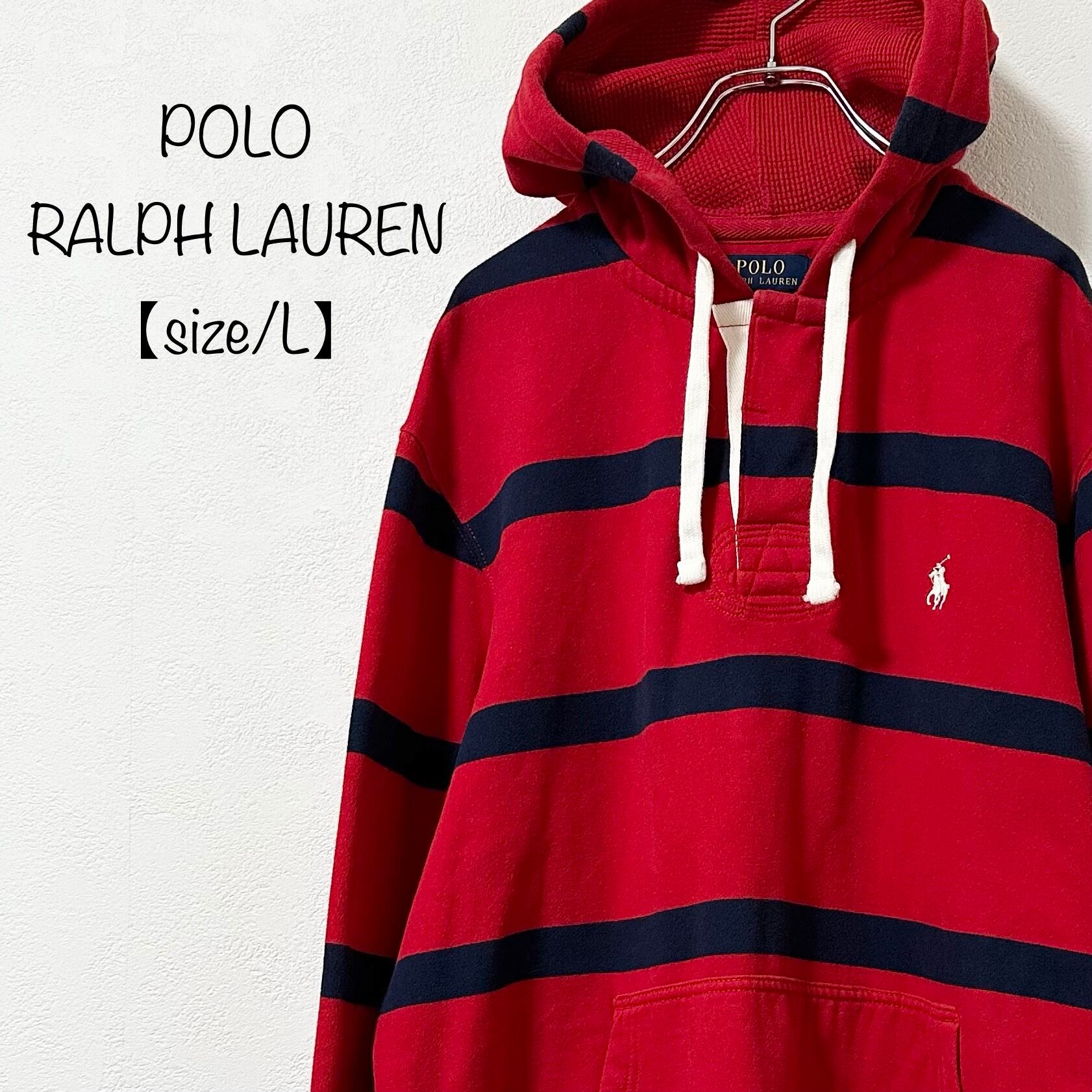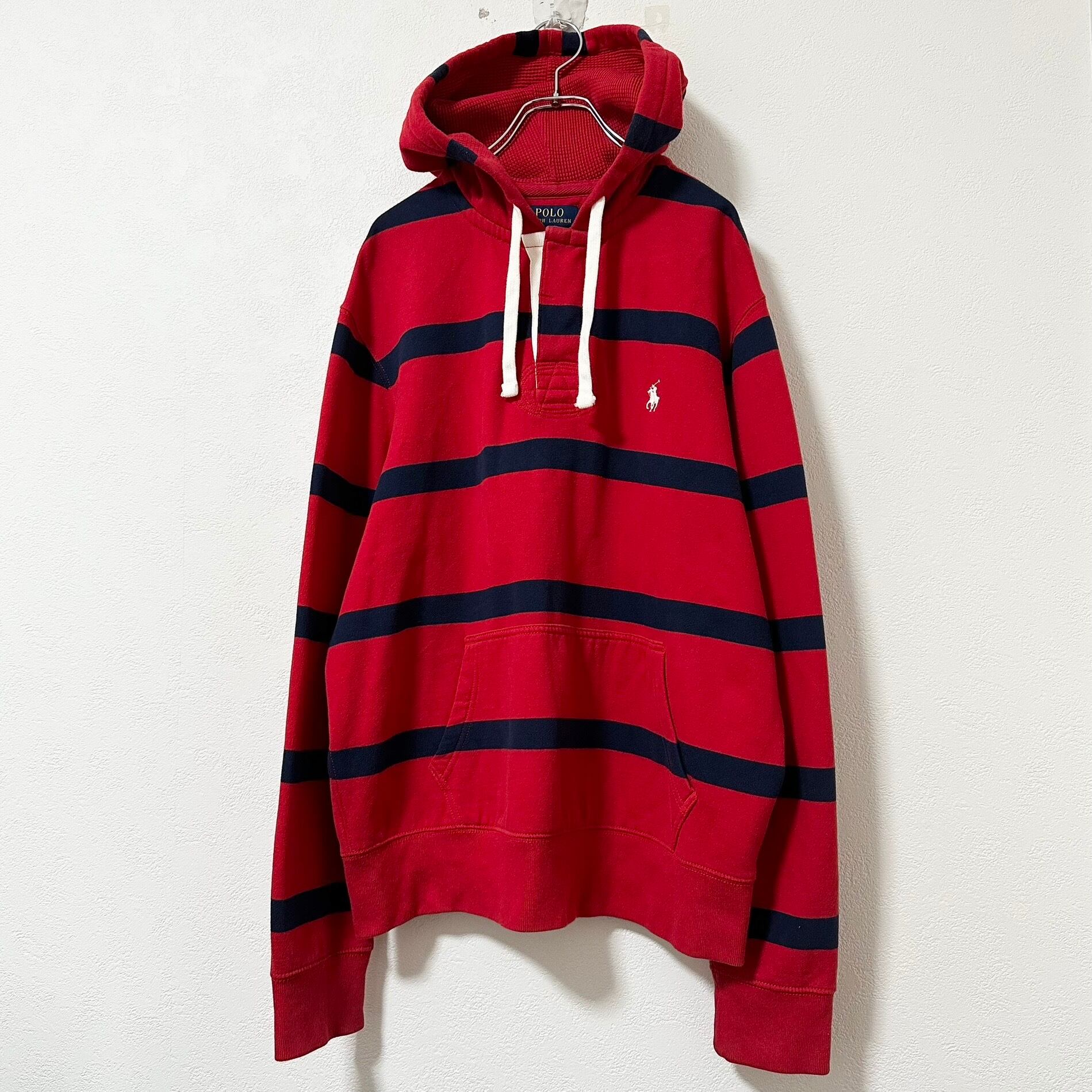 POLO RALPH LAUREN/ポロ ラルフローレン★パーカー★ラガーシャツタイプ★レッド×ネイビー/赤紺白★L