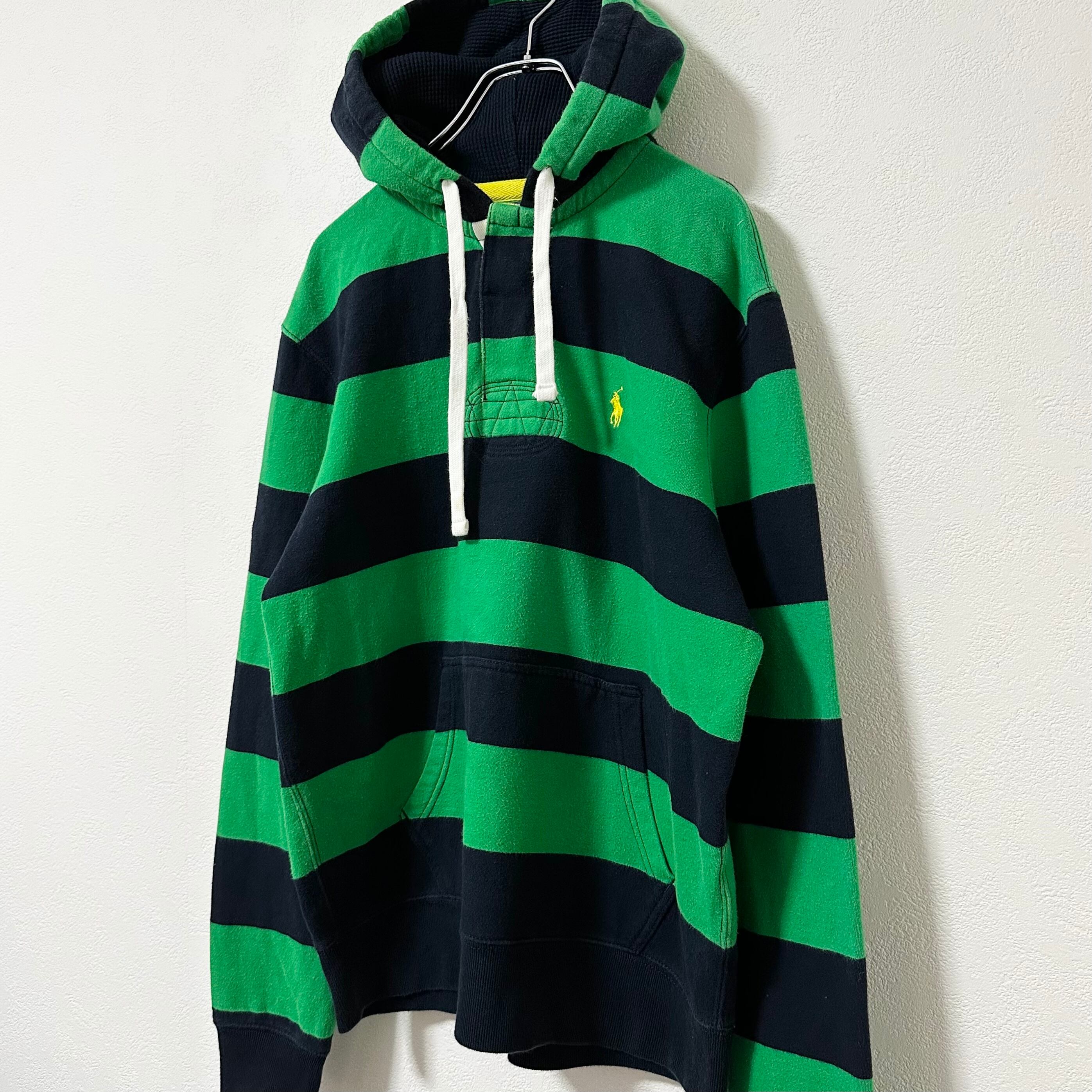 POLO RALPH LAUREN/ポロ ラルフローレン★パーカー★ラガーシャツタイプ★グリーン×ネイビー/緑紺白★S〜M相当