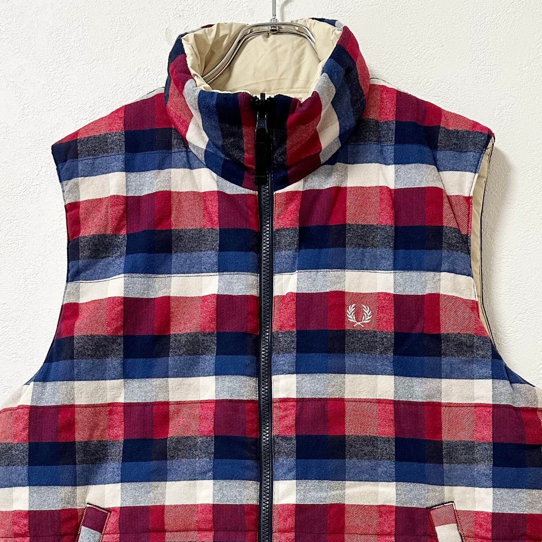 FREDPERRY/フレッドペリー★リバーシブルダウンベスト★チェック★レッド×ブルー×ネイビー×ホワイト/赤青紺白★XL