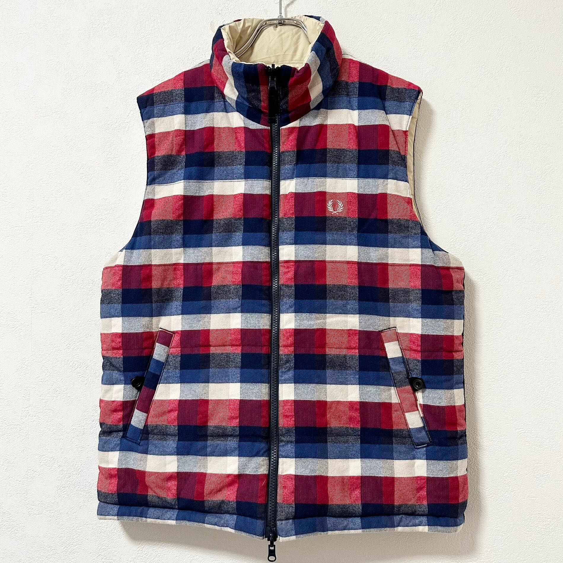 FREDPERRY/フレッドペリー★リバーシブルダウンベスト★チェック★レッド×ブルー×ネイビー×ホワイト/赤青紺白★XL