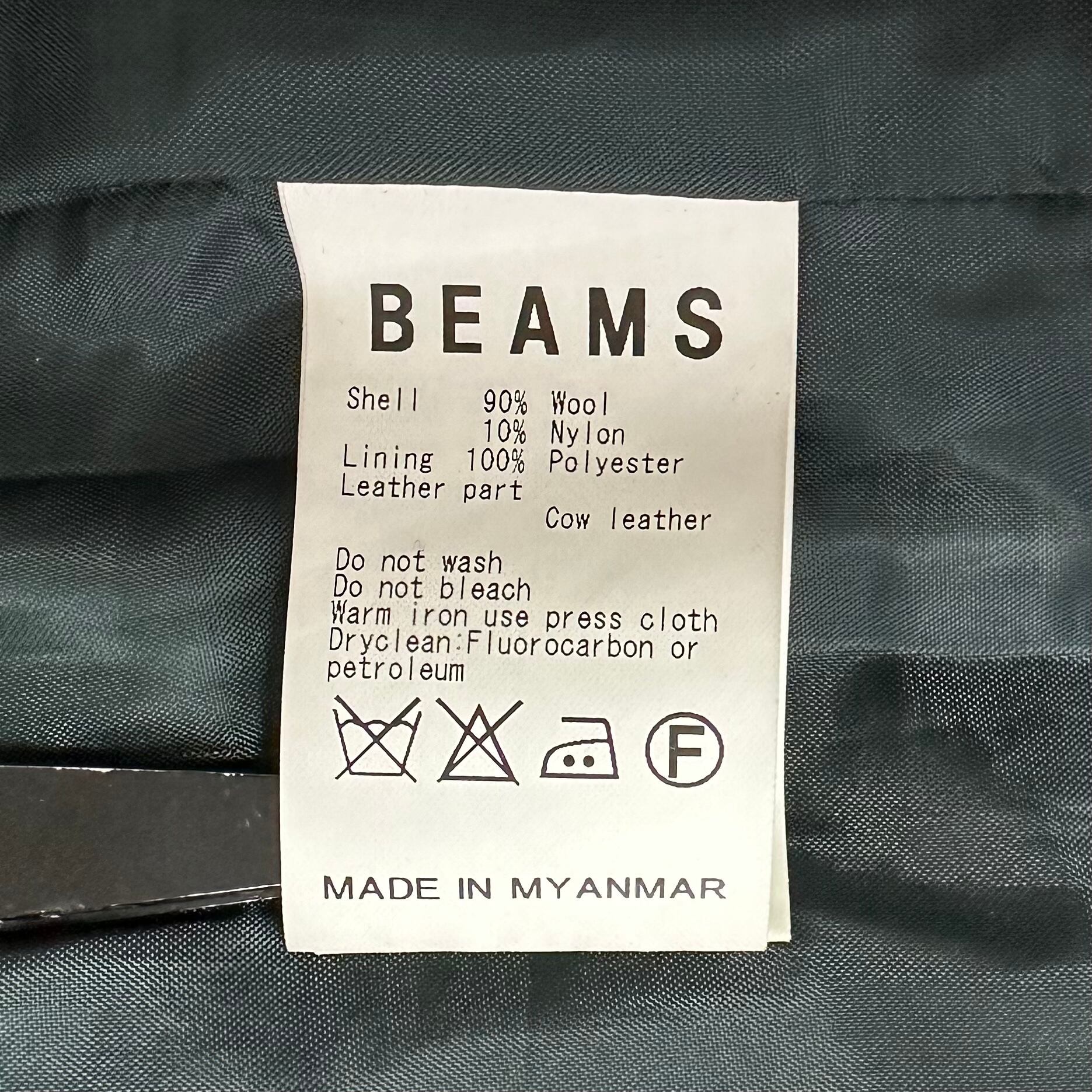 BEAMS/ビームス★ダッフルコート★グリーン/緑★ウール&レザー(牛革)★M
