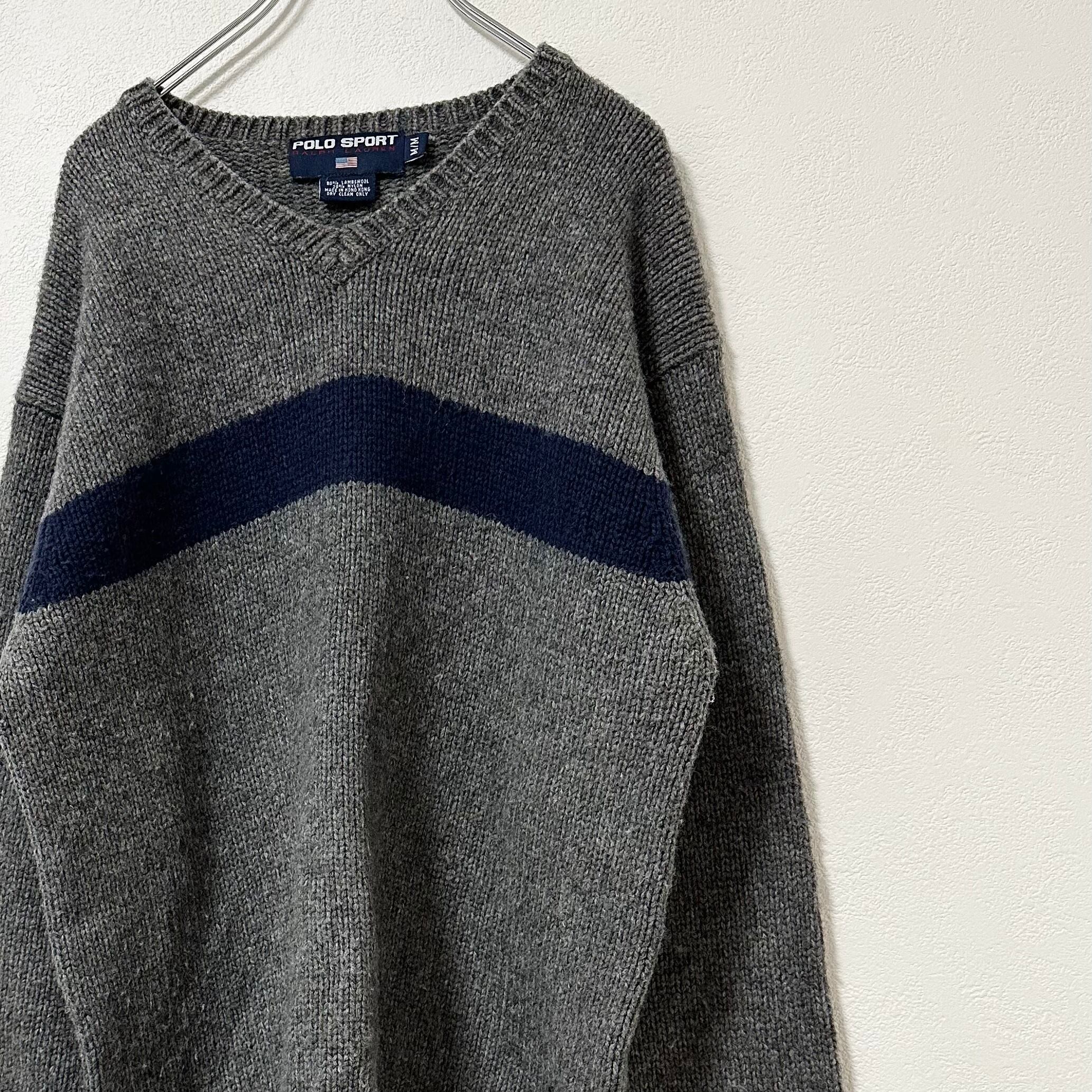 90s00s★RALPH LAUREN/ラルフローレン★POLO SPORT/ポロスポーツ★ウールニット・セーター★グレー紺★M