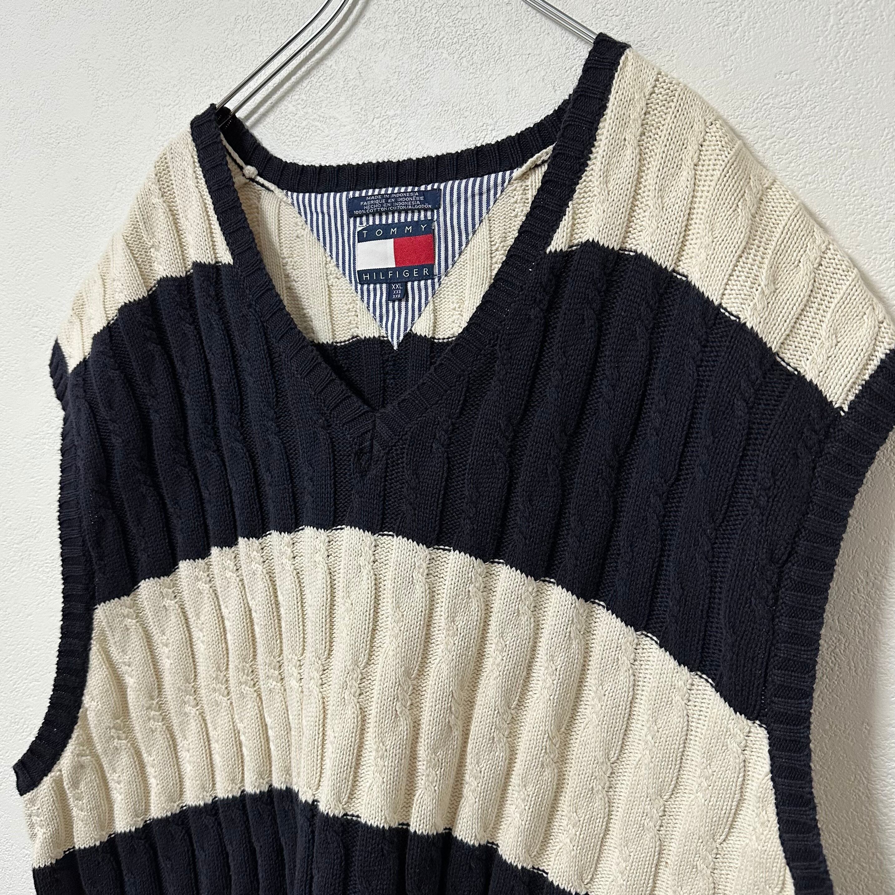 90s★TOMMY HILFIGER★トミーヒルフィガー★ボーダー★ニット★ベスト★ネイビー×オフホワイト★紺×白/生成り★XXL