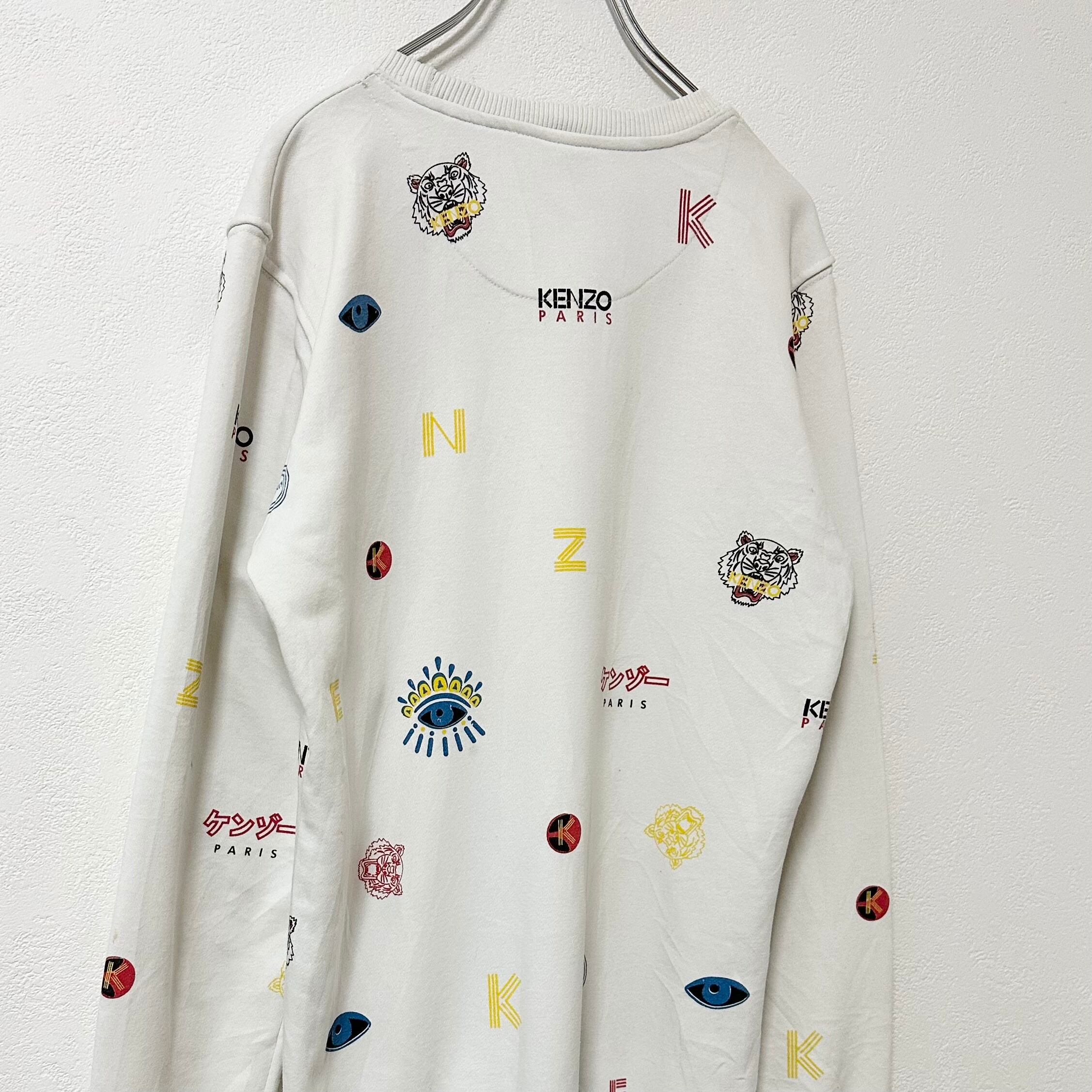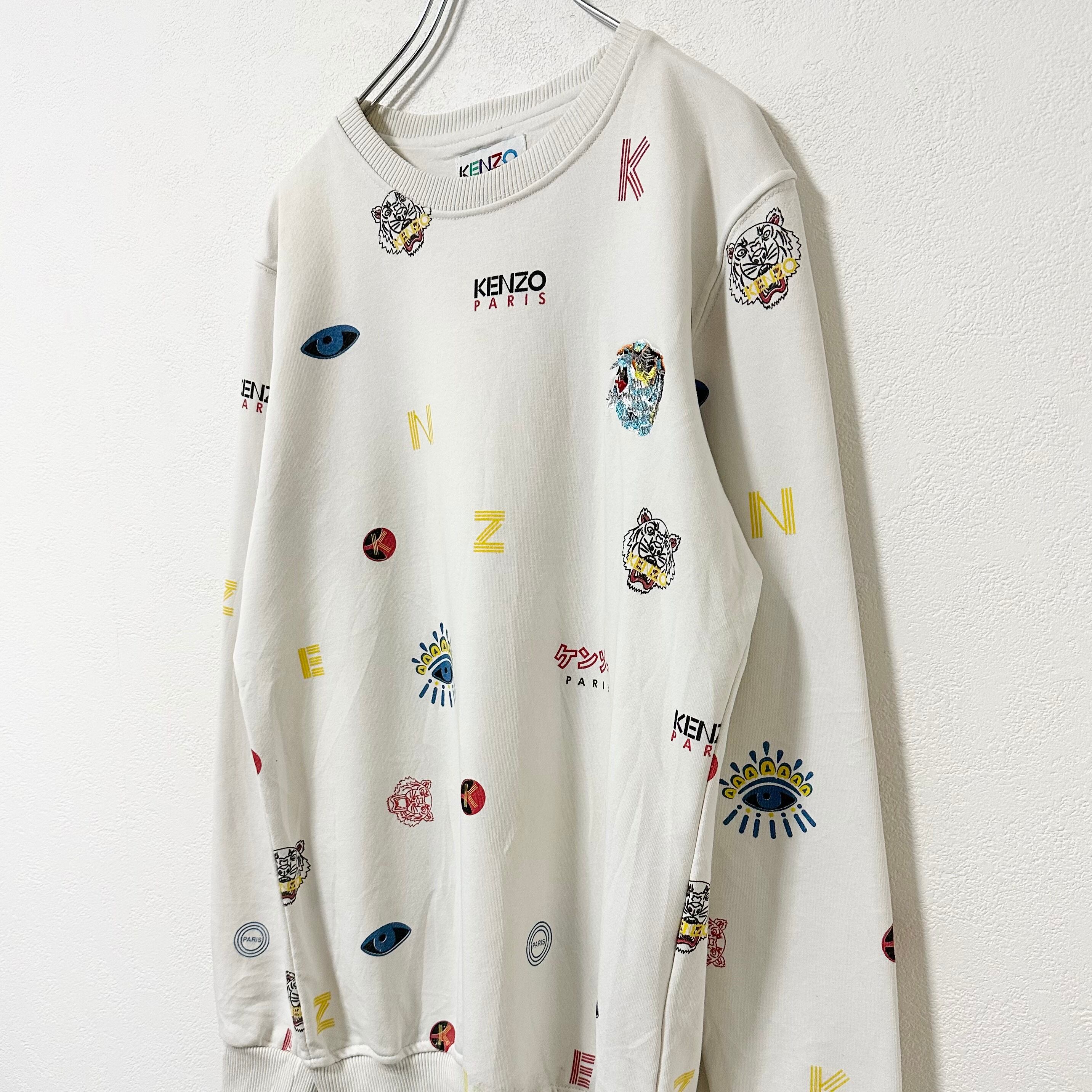 KENZO/ケンゾー★スウェット★総柄★虎/タイガー刺繍★ホワイト/白赤青黄★M
