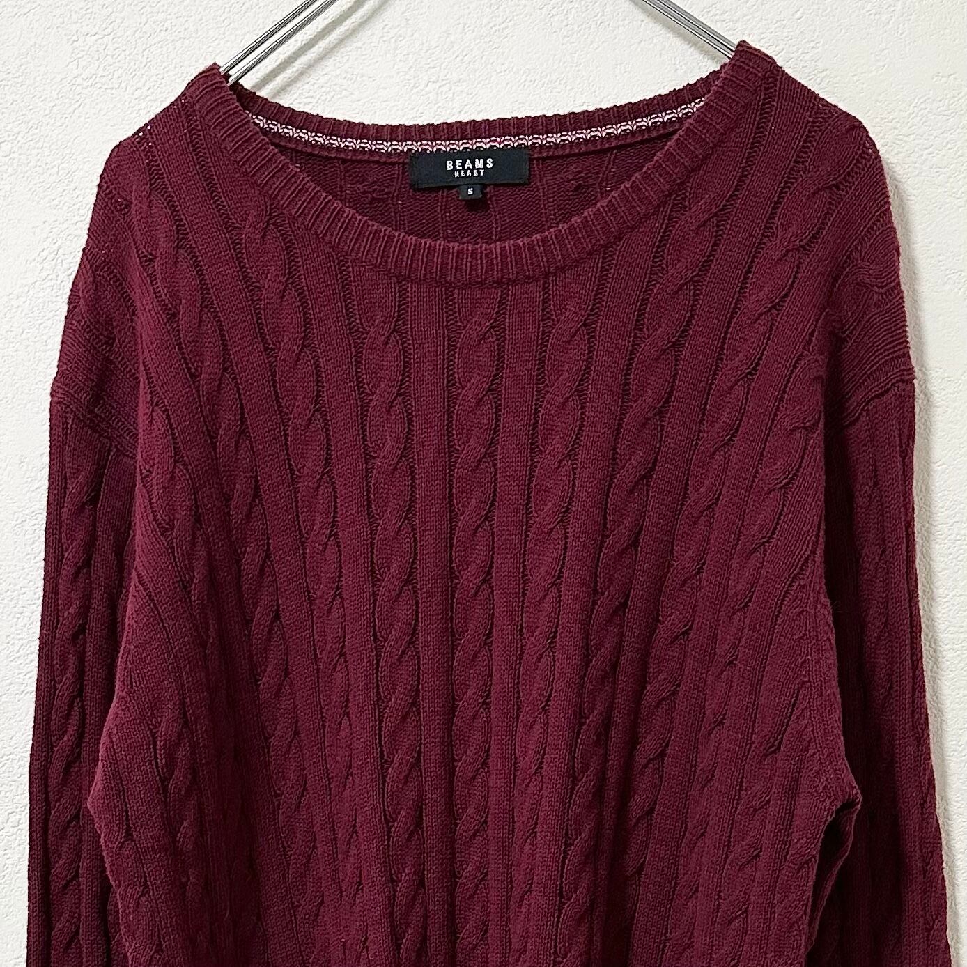 BEAMS/ビームス★ケーブルニットセーター★ワイン・ボルドー・バーガンディ★S