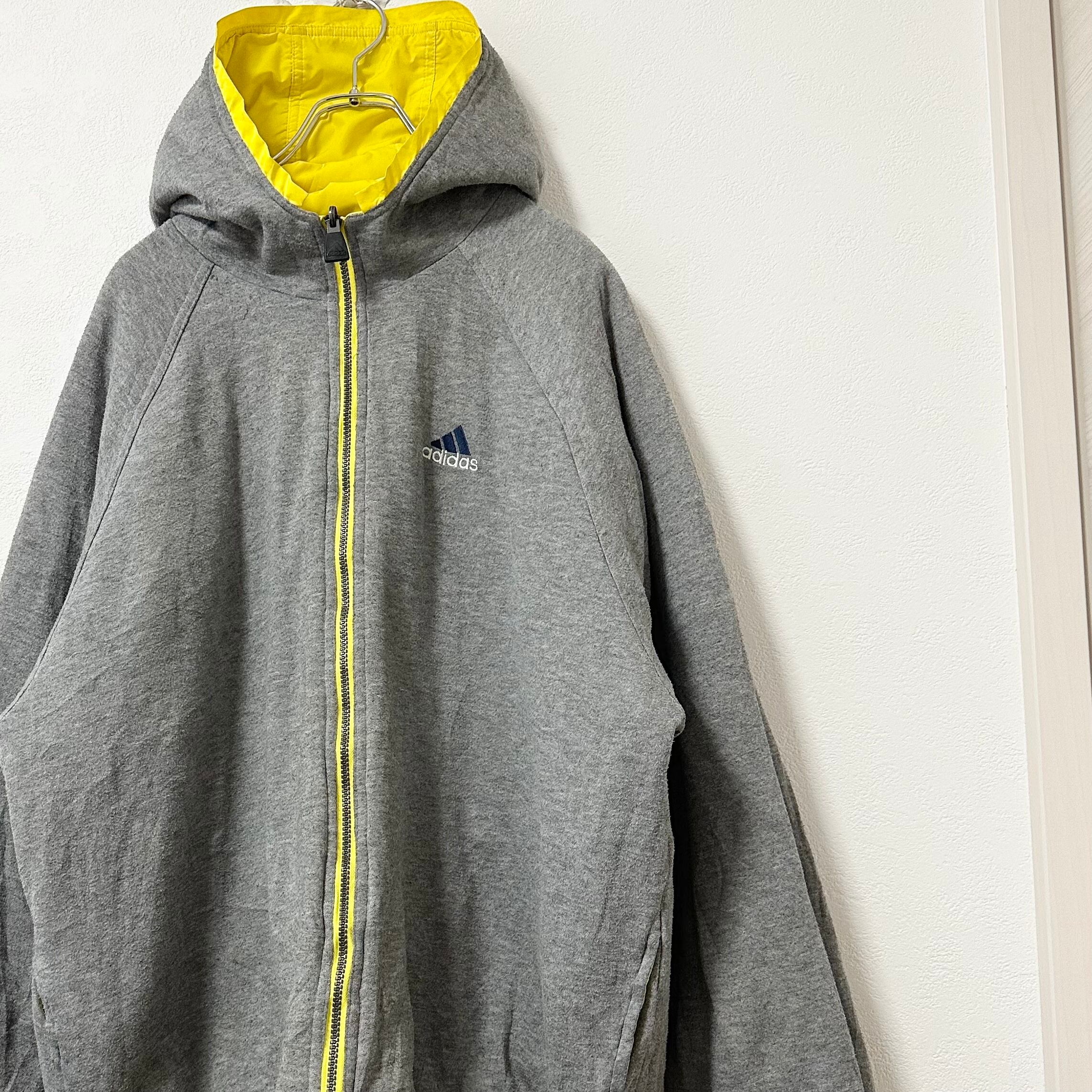 90s★万国旗タグ★adidas/アディダス★リバーシブルジャケット★イエロー/黄×紺×白×グレー★XL
