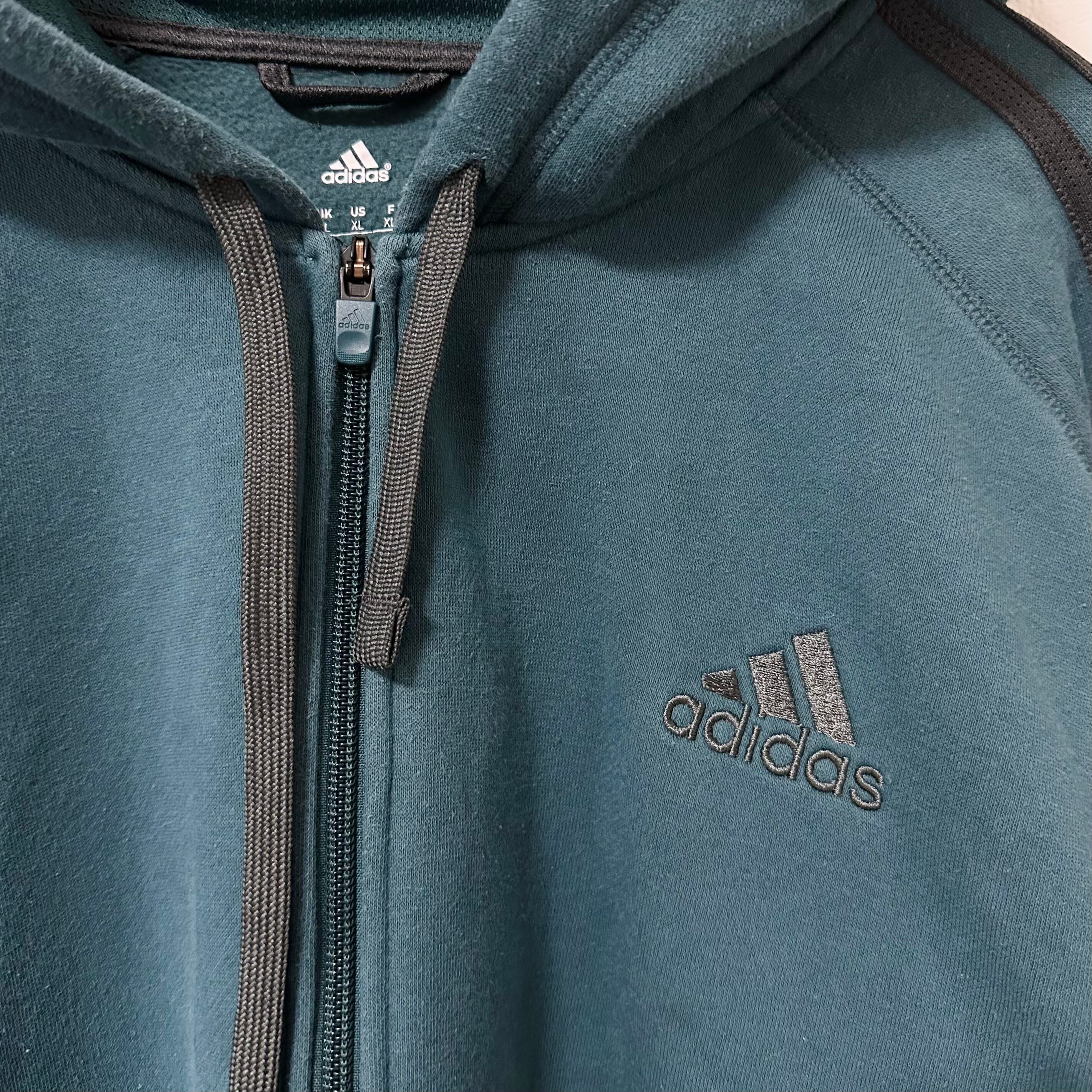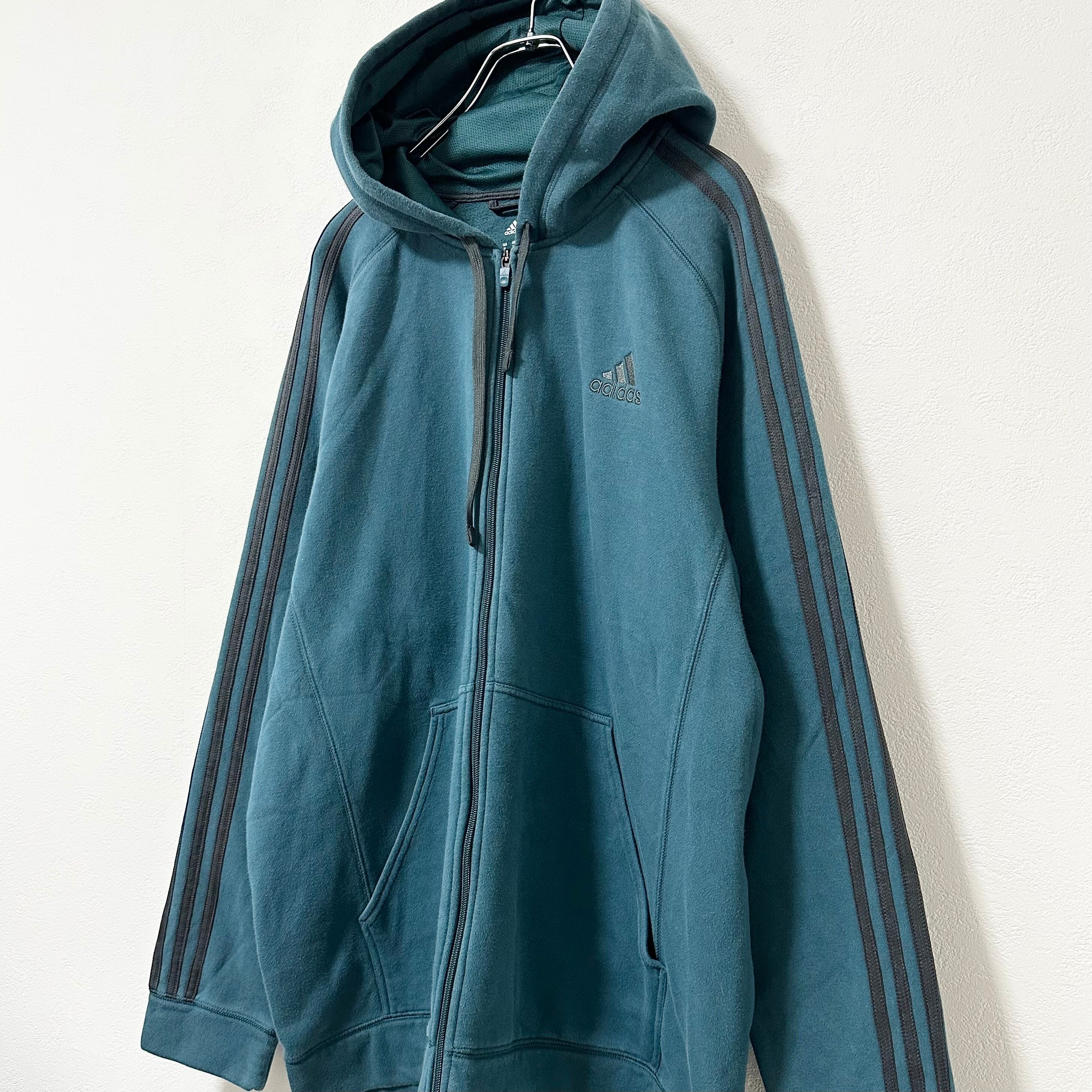 adidas/アディダス★ジップパーカー★スウェット★グリーンブルー/青緑×グレーブラック/灰黒系★XXL〜3XL相当