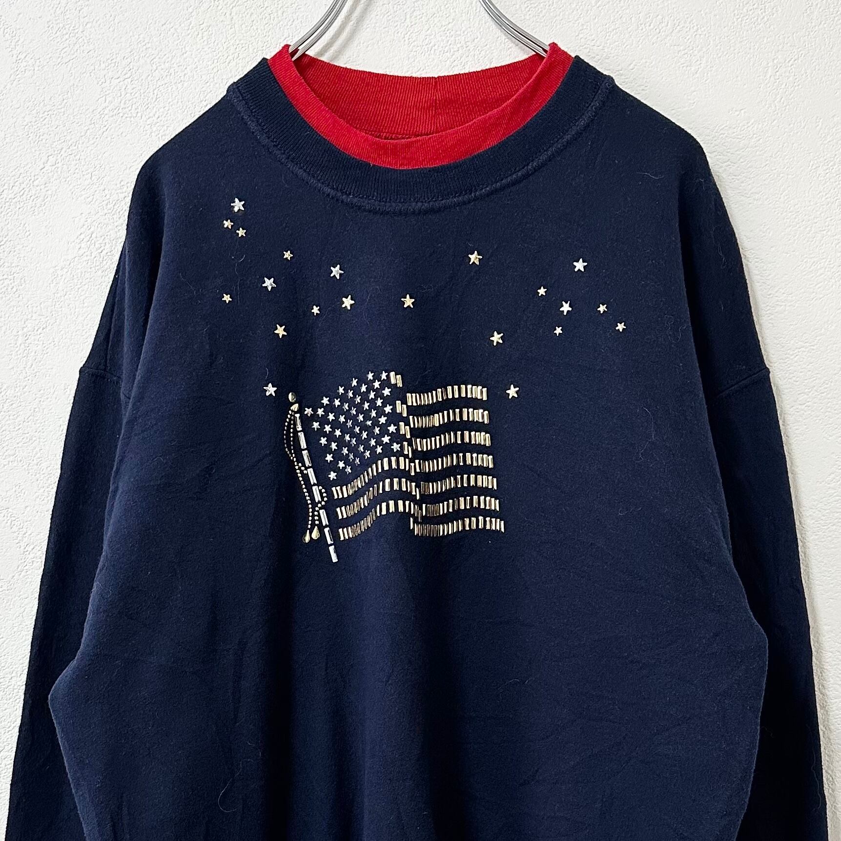 80s★US古着★JERZEES★星条旗★ヴィンテージスウェット★ネイビー紺★M