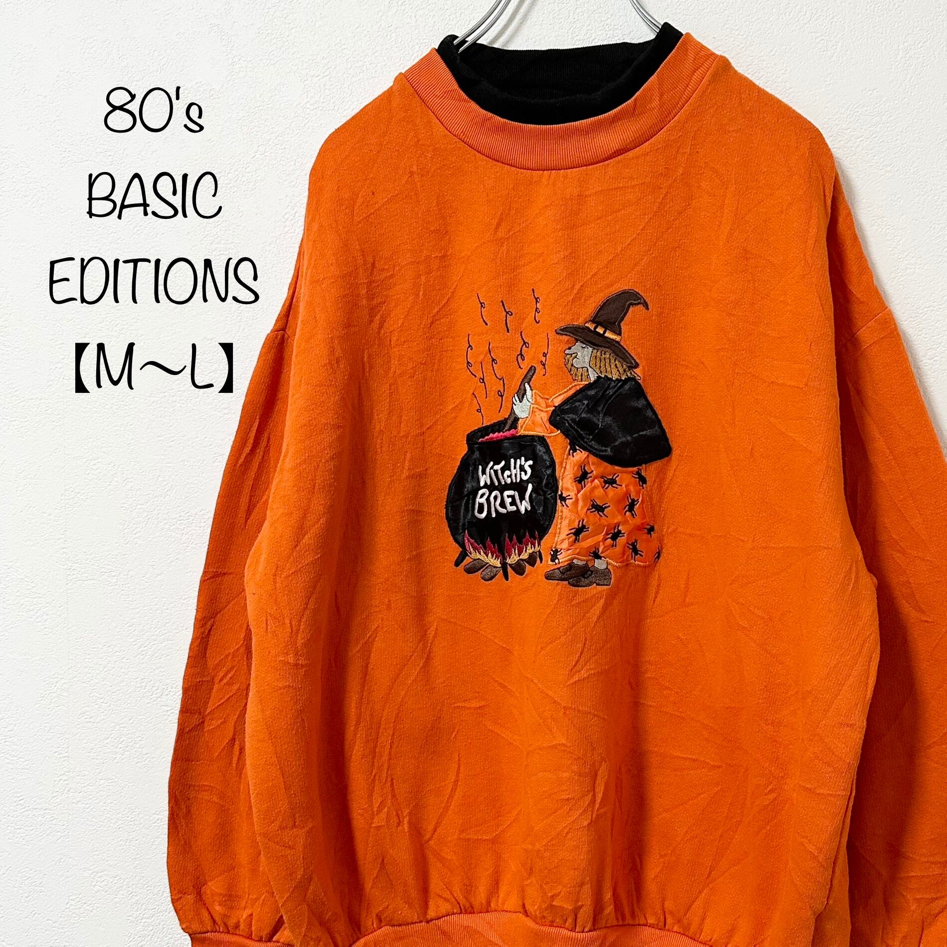 80s★US古着★魔女★ハロウィン★ヴィンテージスウェット★オレンジ×黒★M〜L