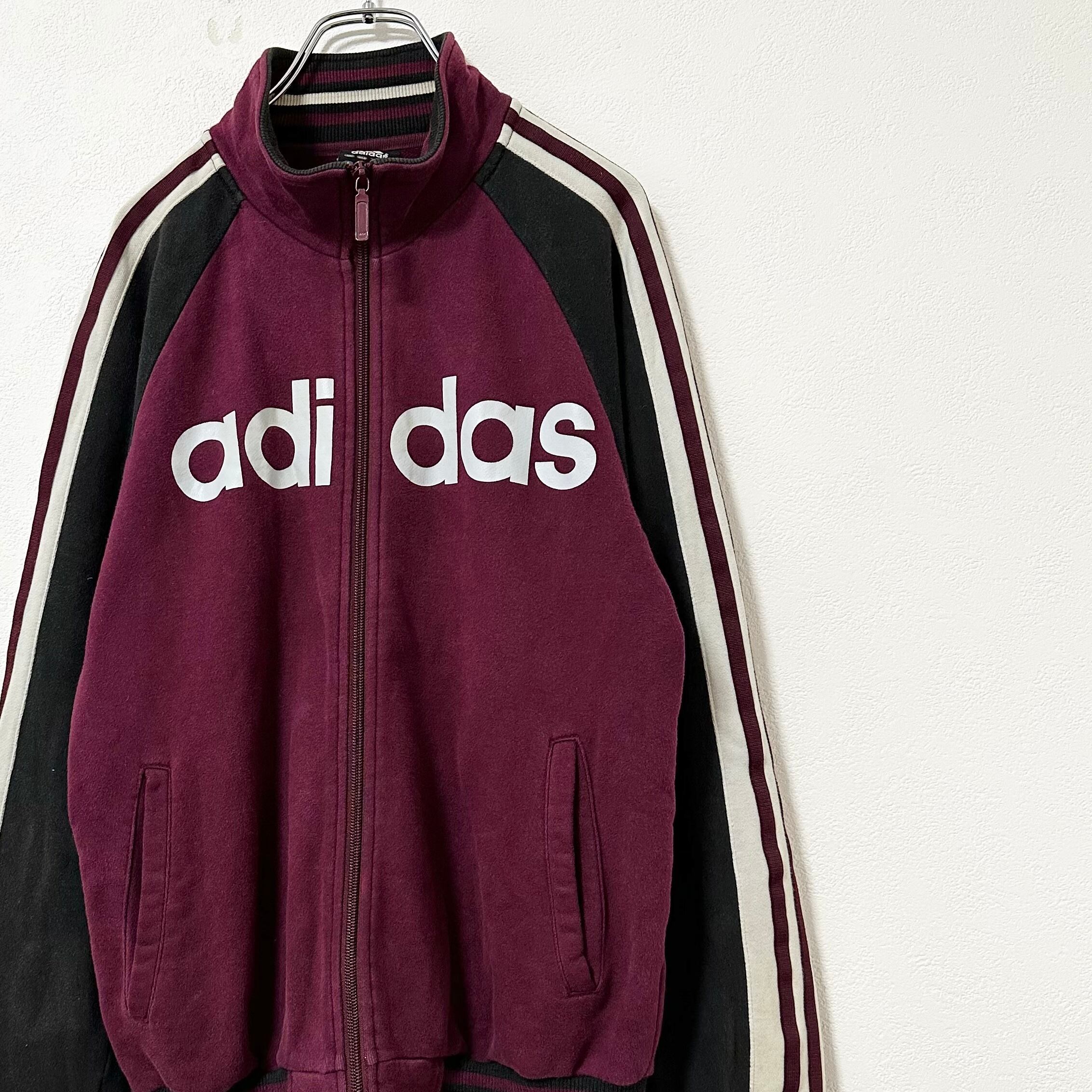 美品★00s★adidas/アディダス★ジャージ★トラックジャケット★スウェット地★ボルドー/ワイン/バーガンディ/赤紫系★L