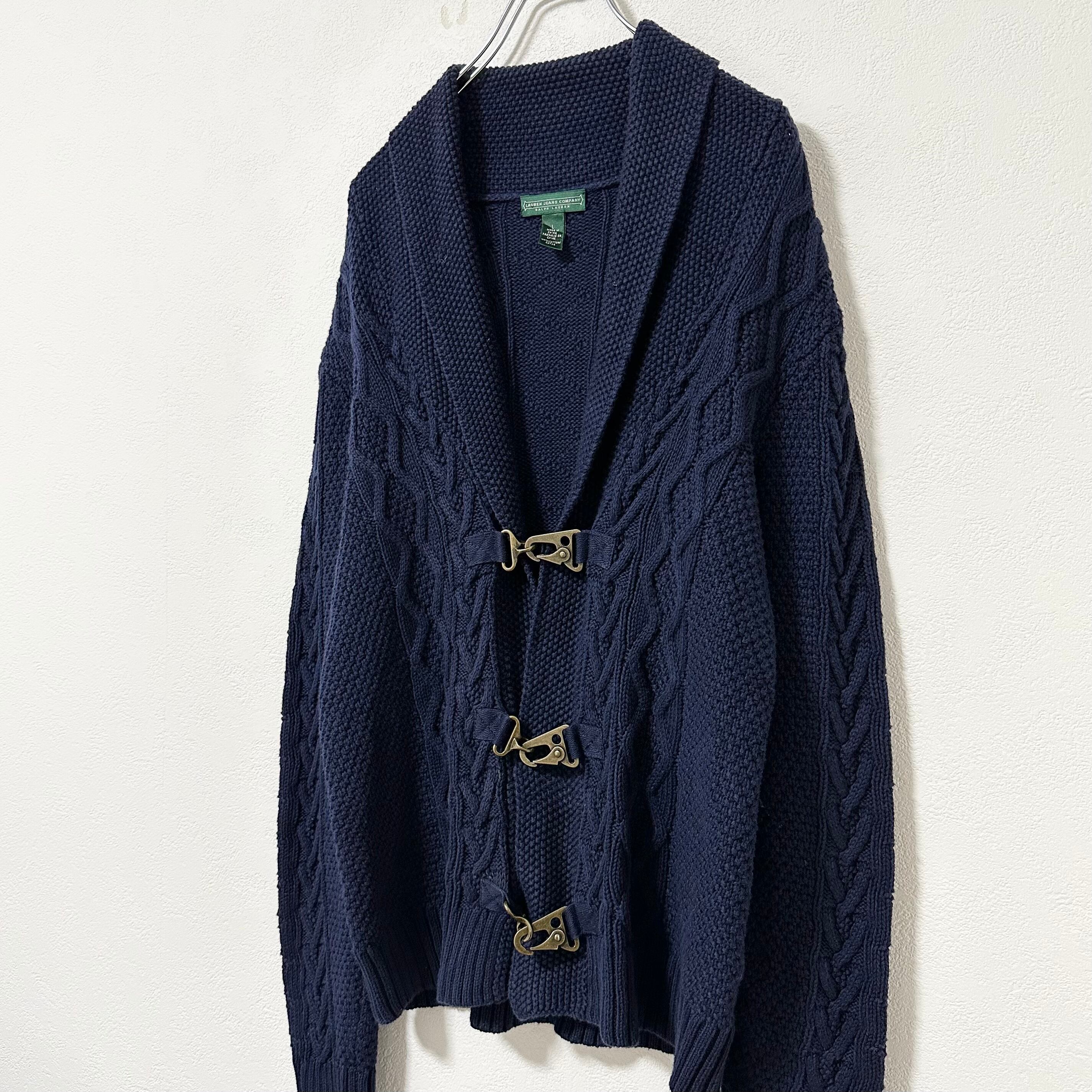 美品★RALPH LAUREN★ラルフローレン★ショールカラー★カーディガン★ファイヤーマンバックル★ネイビー/紺★L