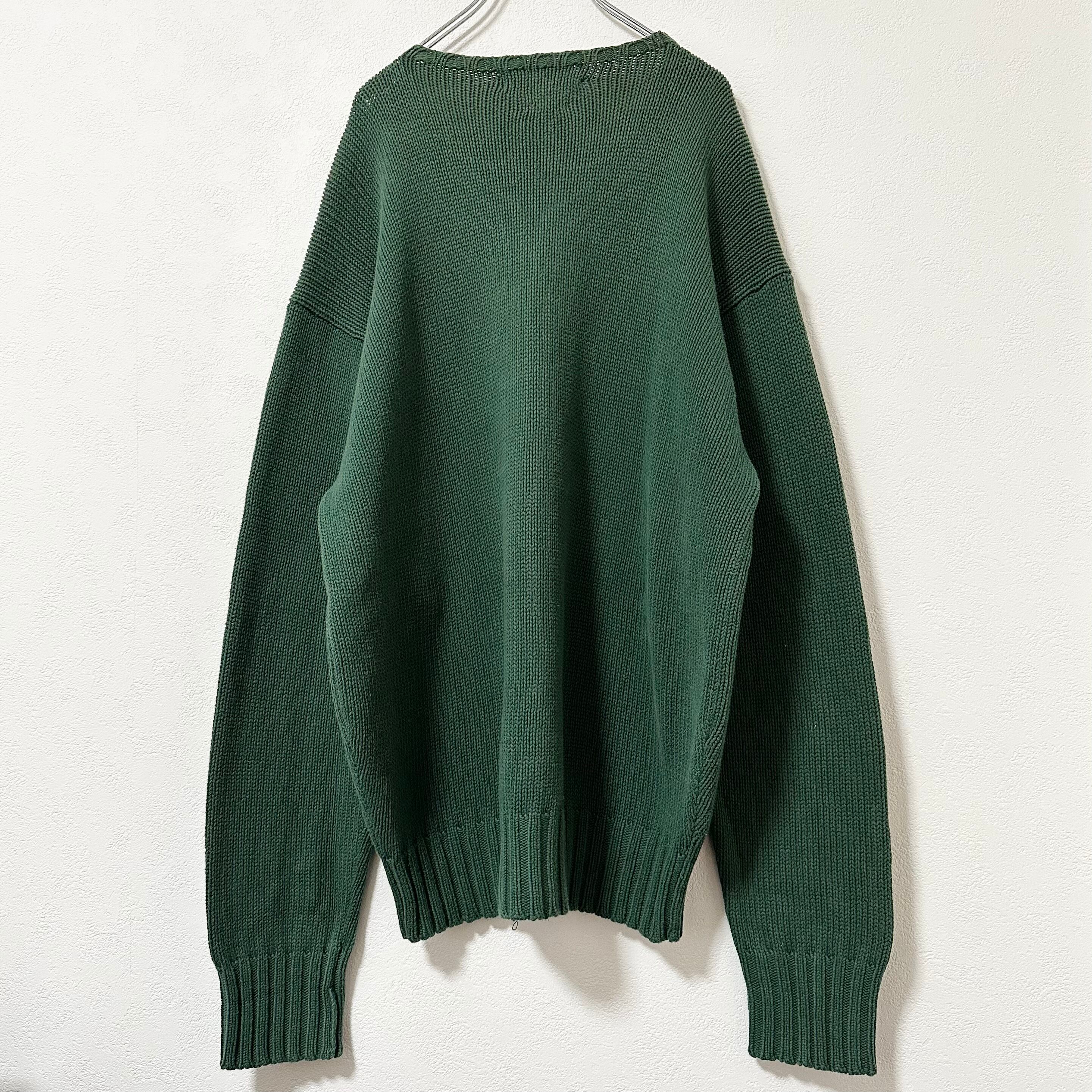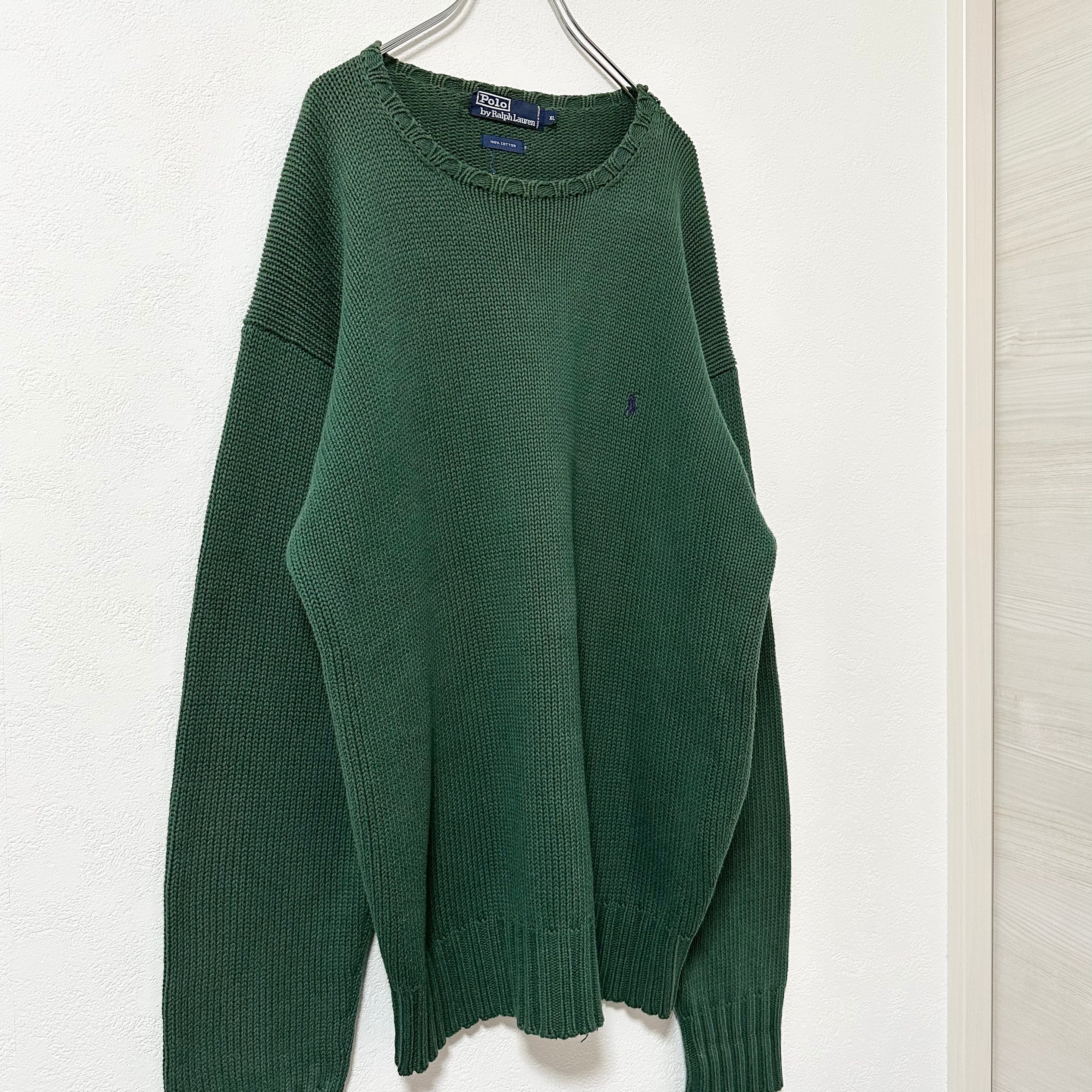 90s★POLO RALPH LAUREN★ポロラルフローレン★ニット・セーター★コットン★グリーン/緑×ネイビー×紺ポニー★XL