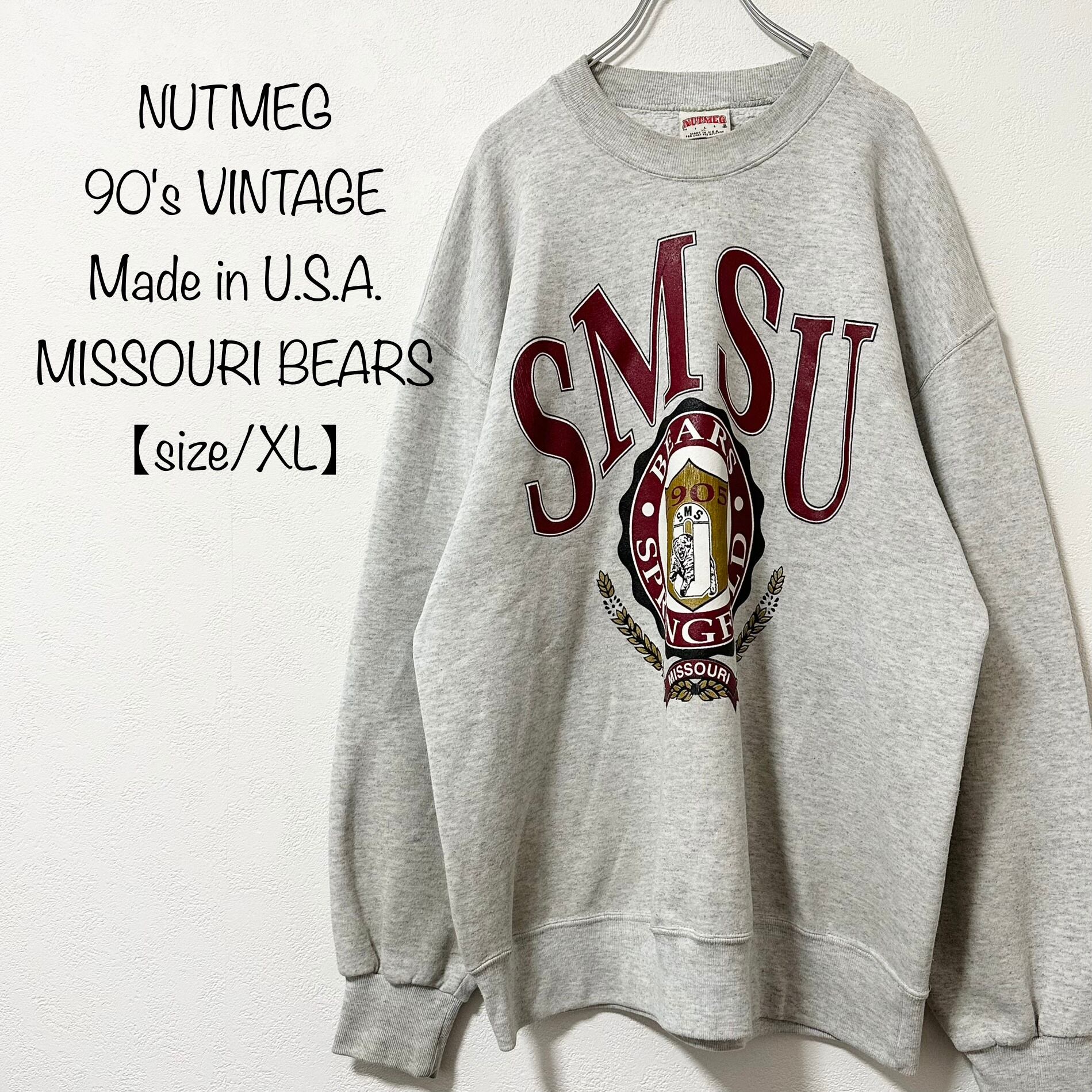 90s★NUTMEG/ナツメグ★MISSOURI BEARS★ミズーリベアーズ★霜降りグレー★USA/アメリカ製★XL