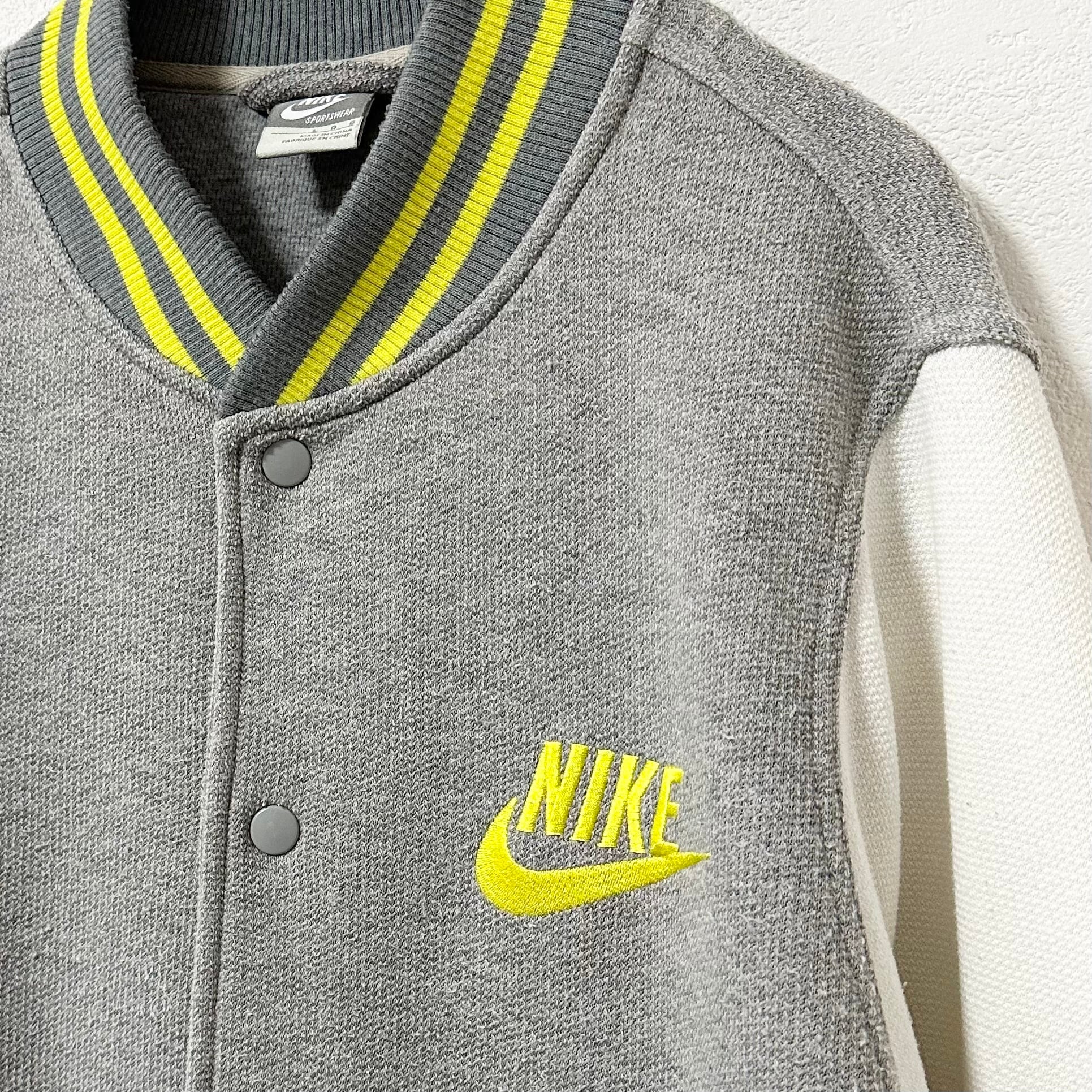 00s★NIKE/ナイキ★スタジャン★パイル/タオル地★グレー×オフホワイト/生成り×イエロー/黄★L ※春仕様