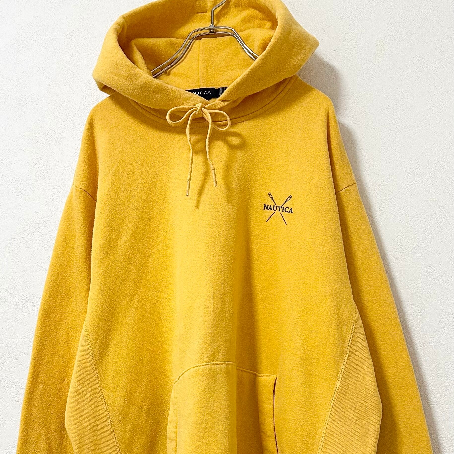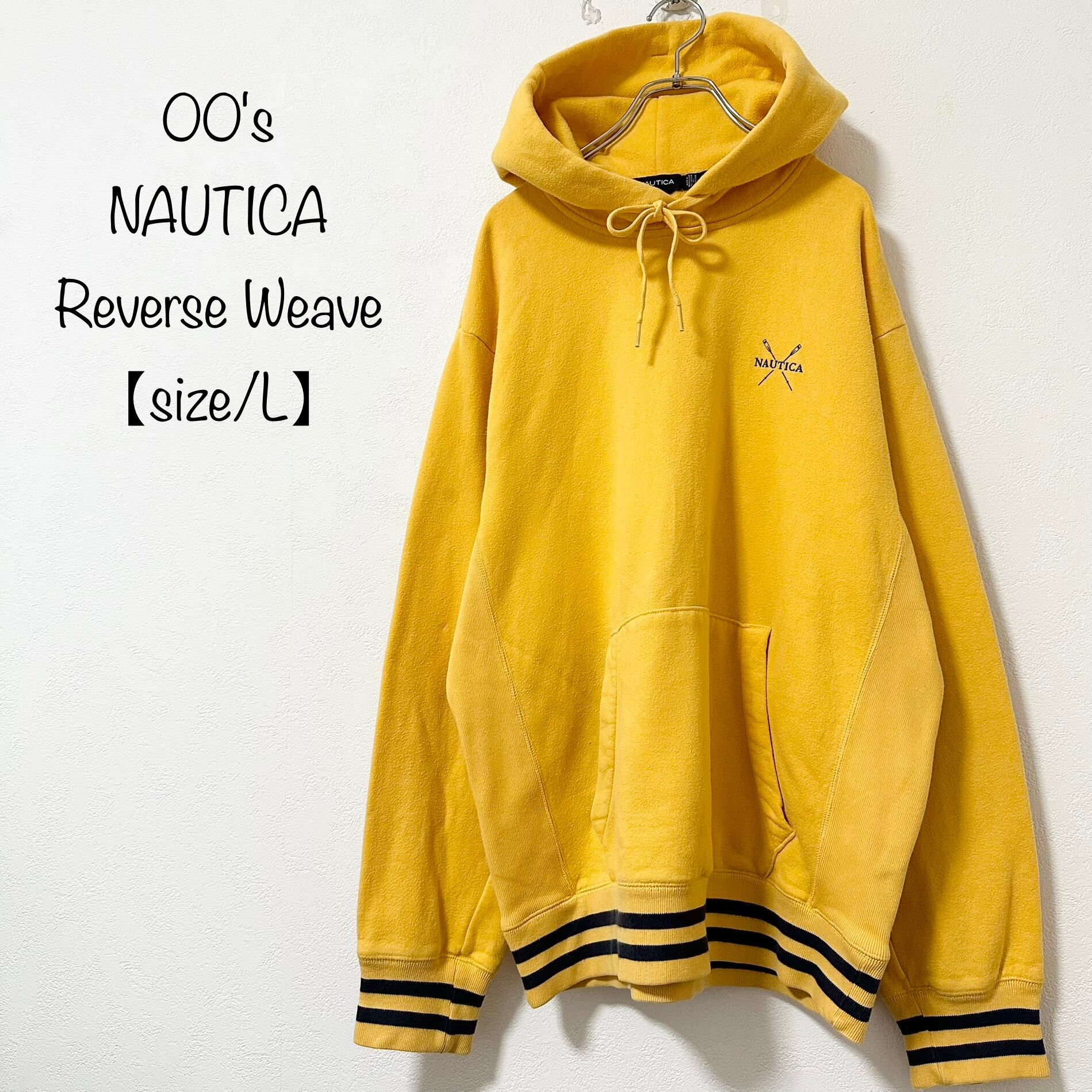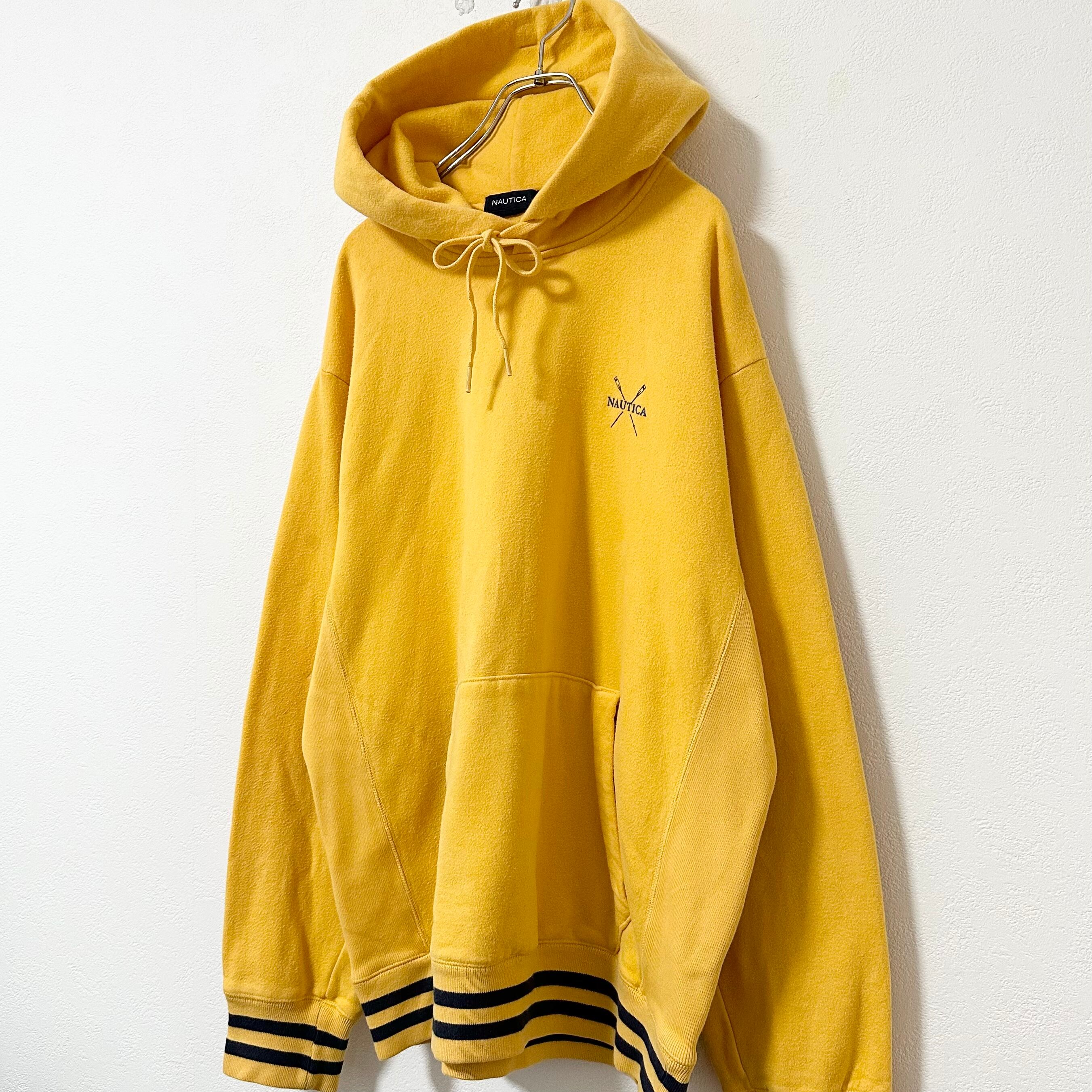 00s★nautica/ノーティカ★スウェットパーカー/フーディー★リバースウィーブ★リブライン★イエロー×ネイビー/黄紺★L