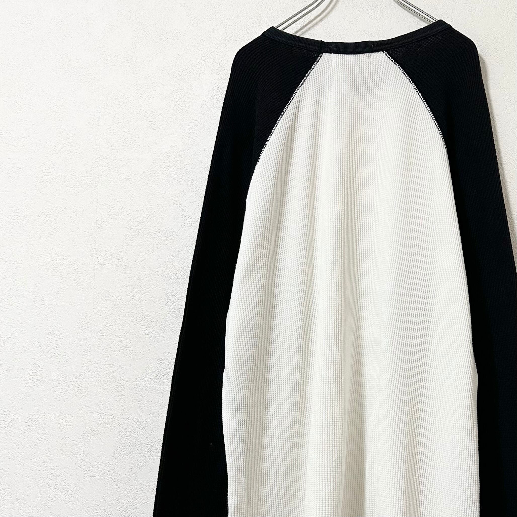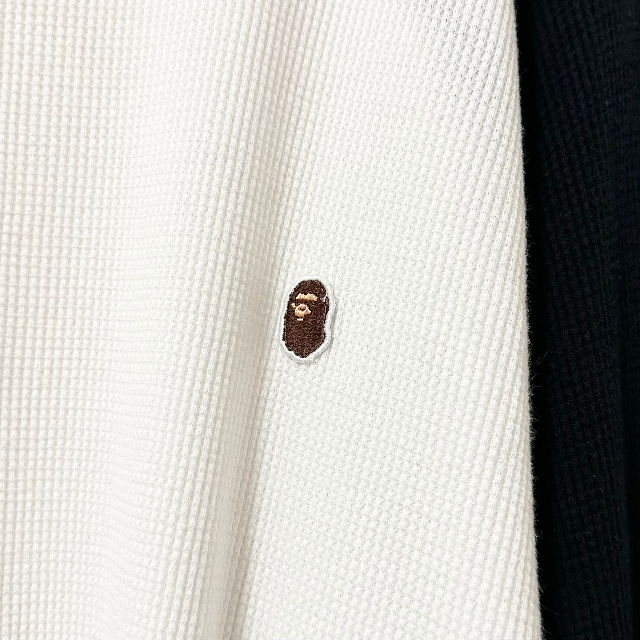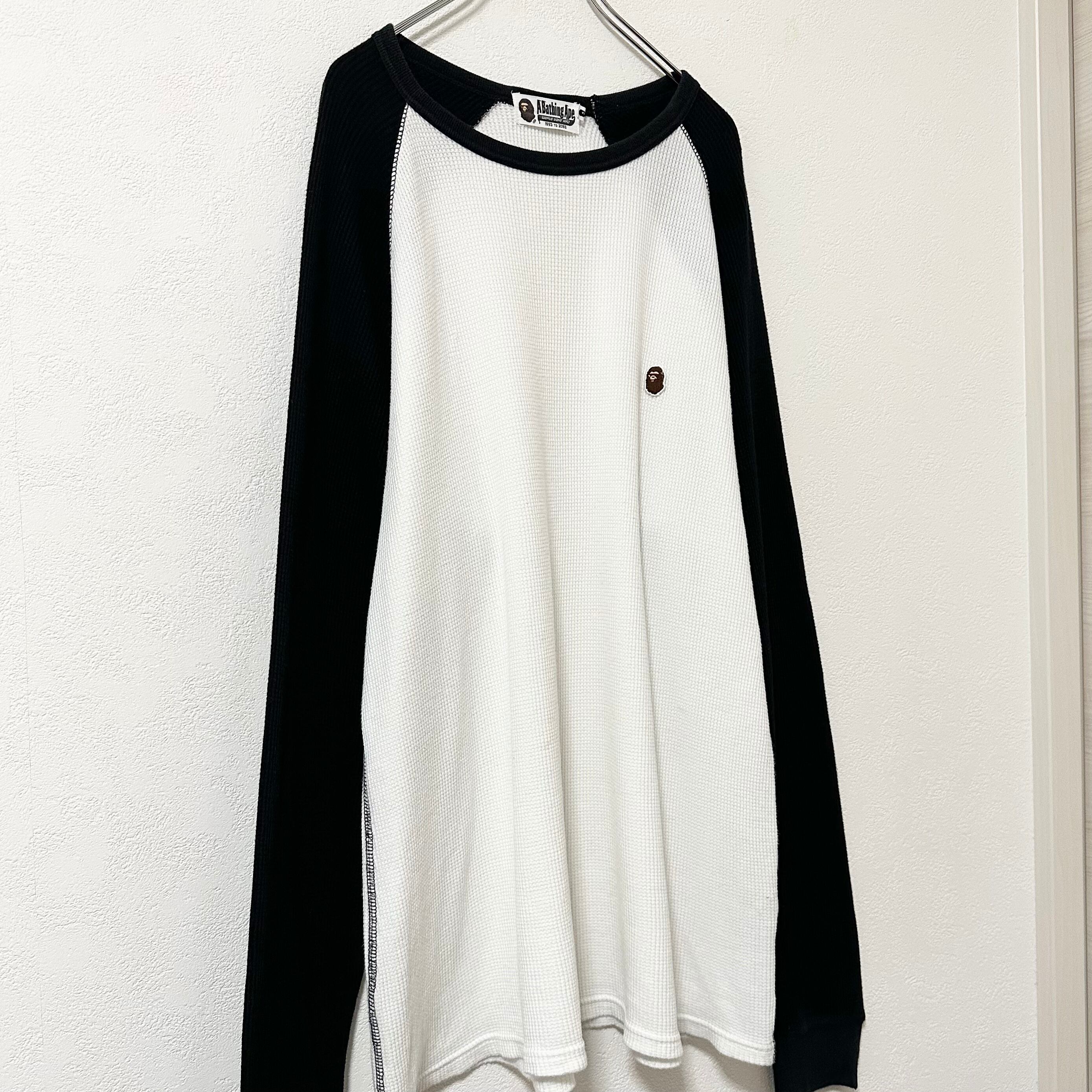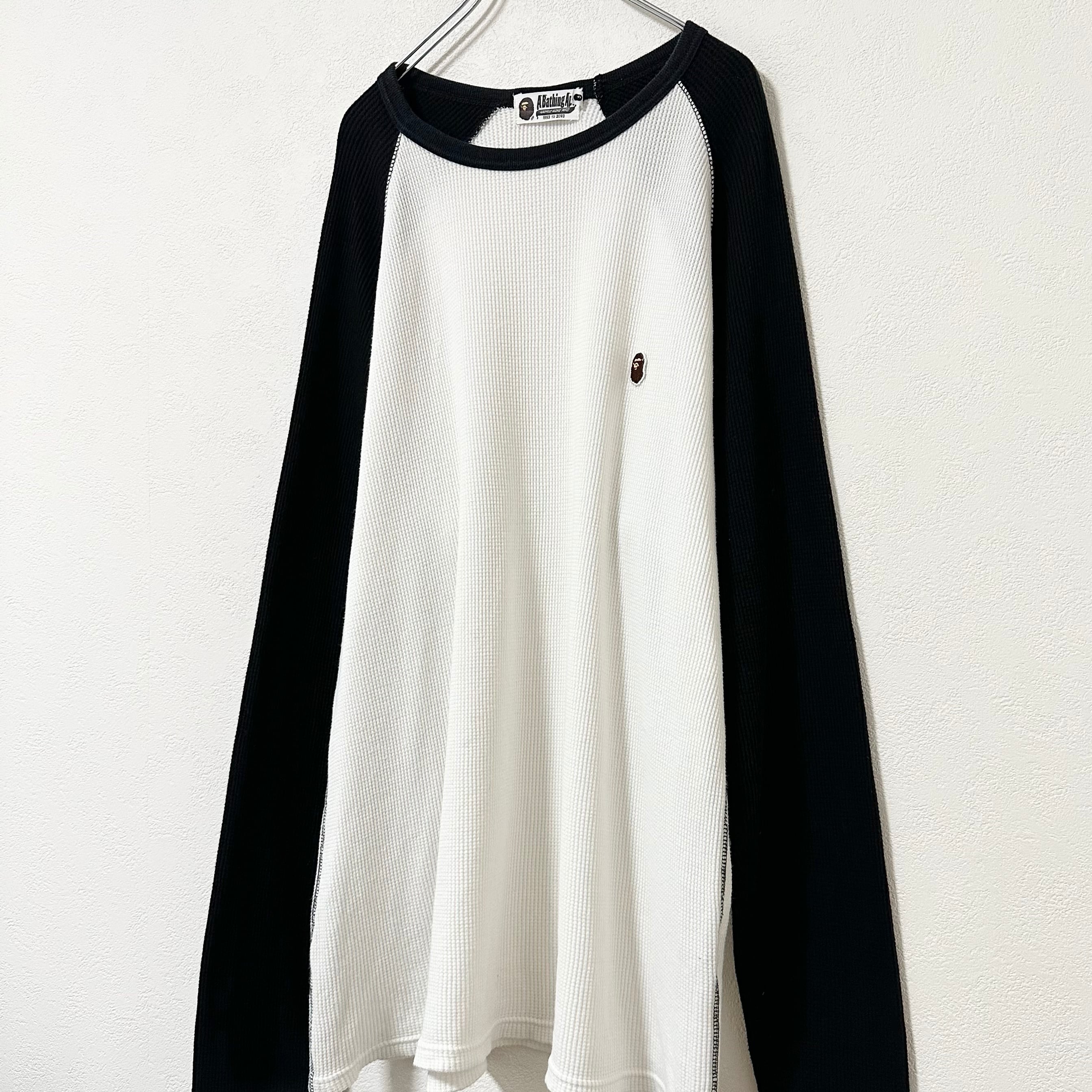 美品★A BATHING APE/BAPE★ベイプ/ベイシング エイプ★ワッフル★ラグラン★ロンT★長袖★ブラック×ホワイト/黒白★XL