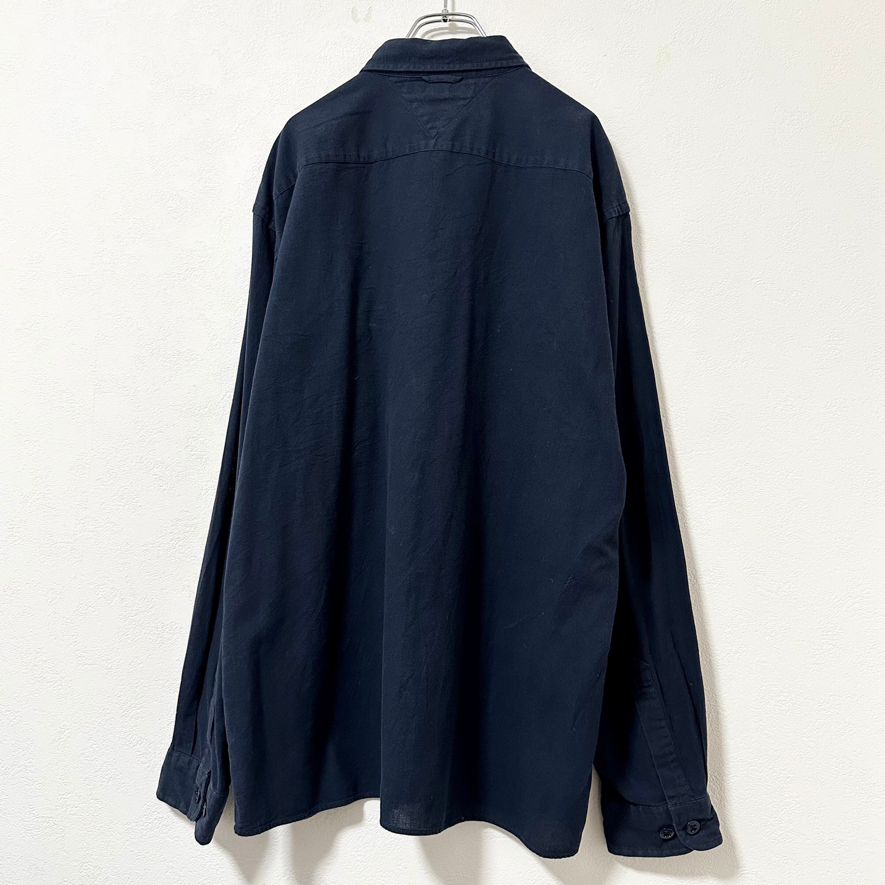 90s★オールドトミー★Tommy Hilfiger/トミーヒルフィガー★長袖シャツ★比翼★Wポケット★ネイビー/紺★XL
