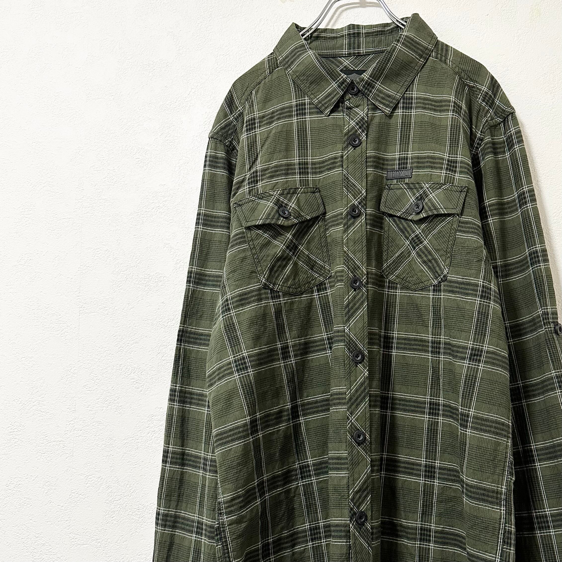 美品★Harley-Davidson★ハーレーダビッドソン★長袖シャツ★チェック★Wポケット★オリーブ・カーキ・グリーン系/緑★L