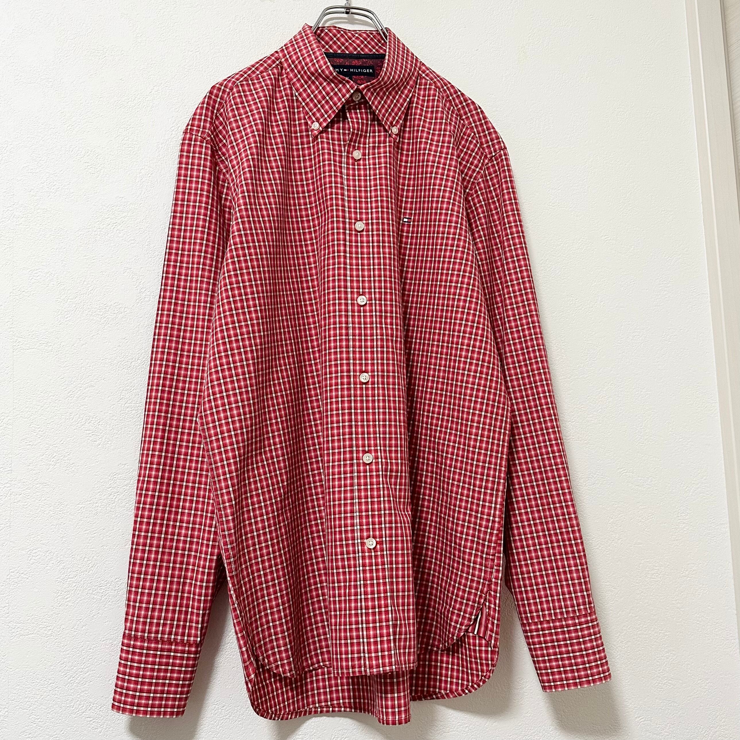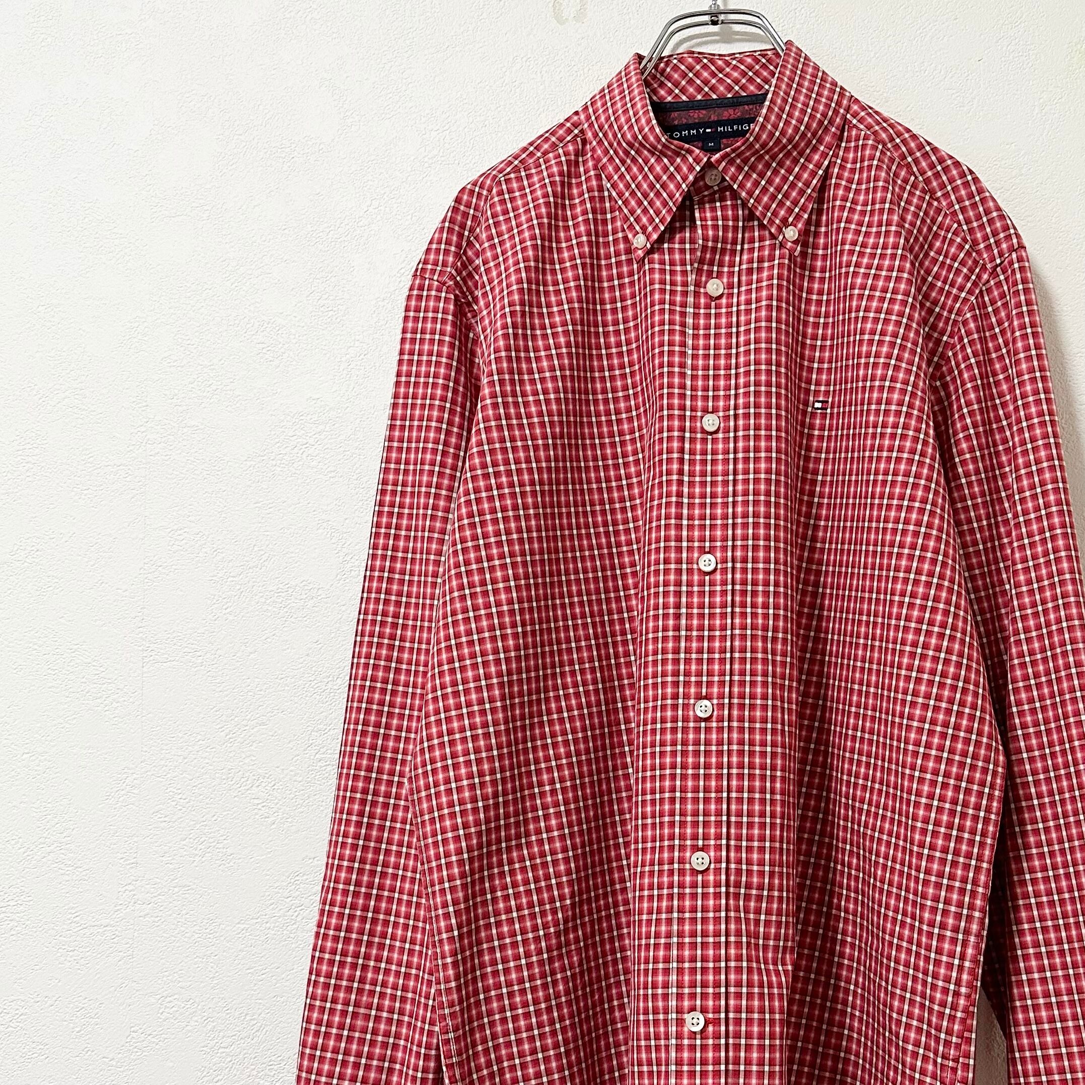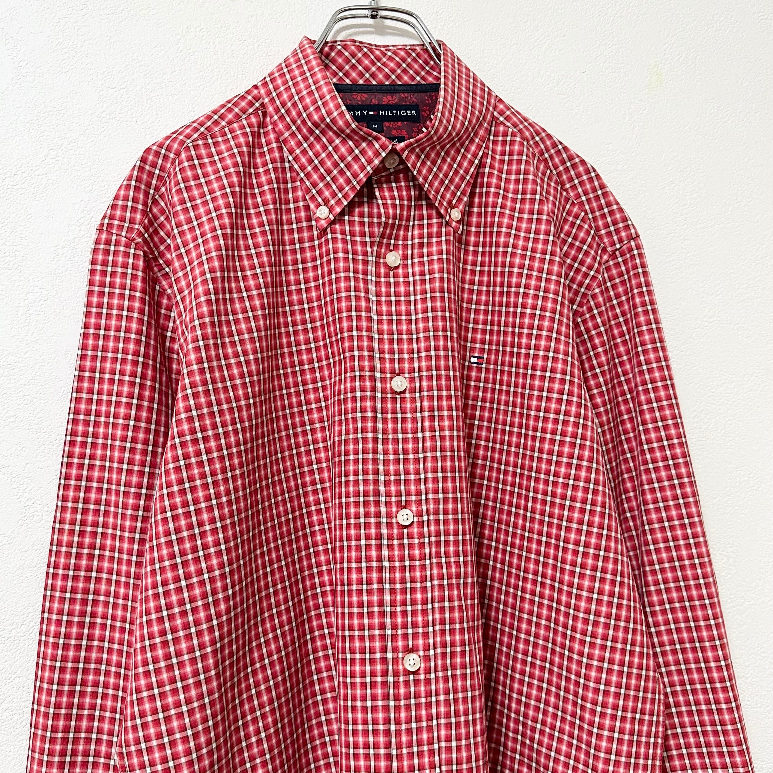 美品★Tommy Hilfiger★トミーヒルフィガー★長袖BDシャツ★チェック★フラッグロゴ★レッド/赤★M
