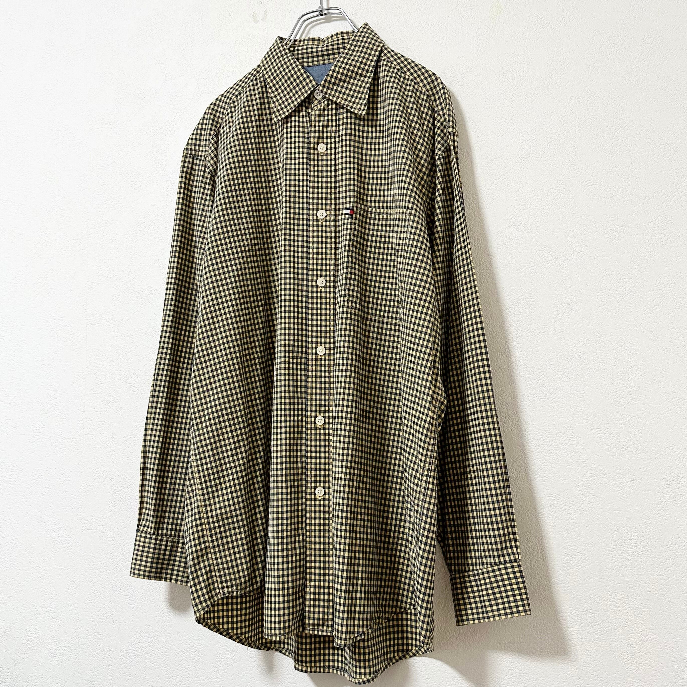 美品★Tommy Hilfiger/トミーヒルフィガー★長袖シャツ★チェック★イエロー×ネイビー/黄×紺★M