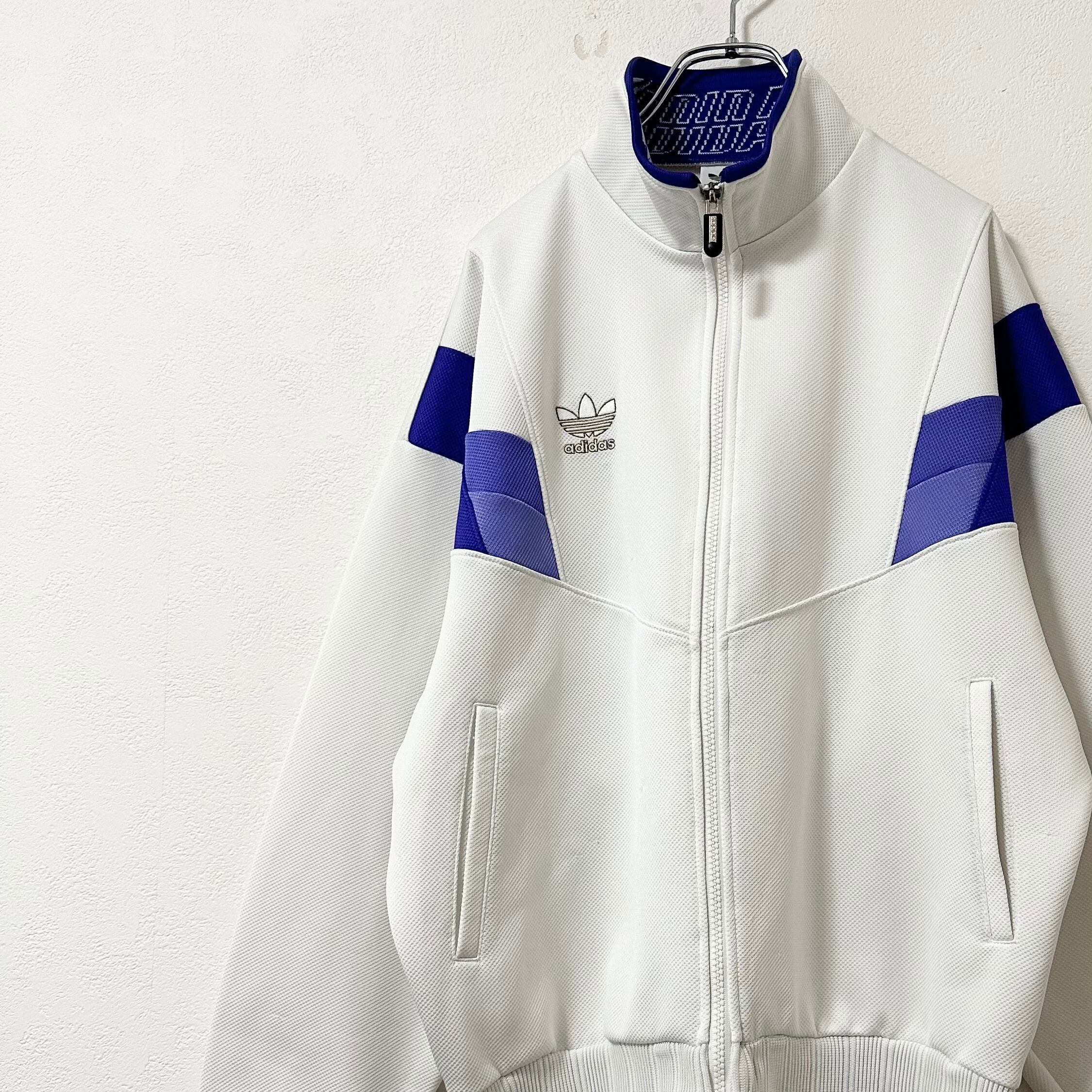 美品★80s★adidas/アディダス★DESCENTE/デサント製★ジャージ★トラックジャケット★ホワイト×パープル/白紫★XL