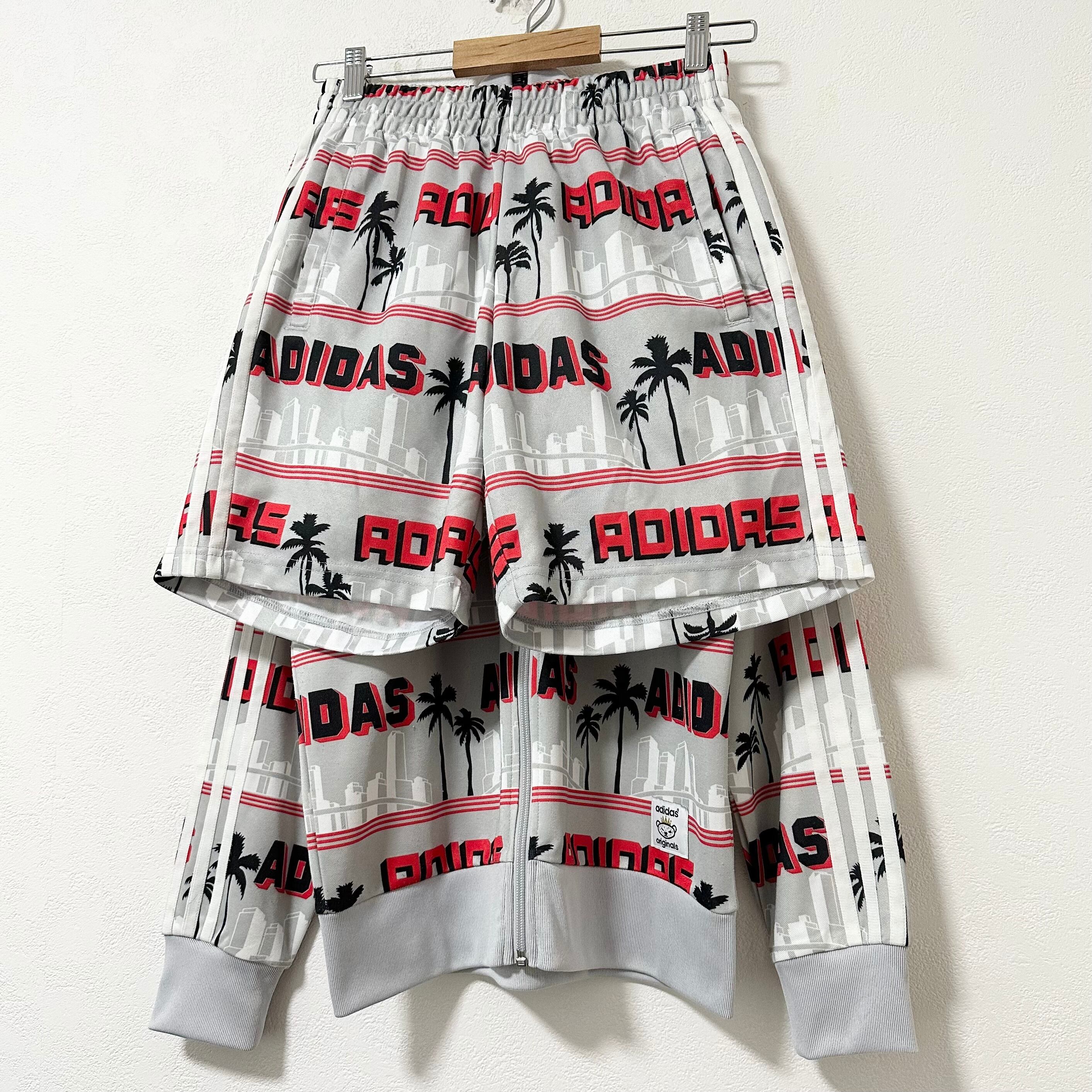 美品★adidas×NIGO★アディダス×ニゴ★セットアップ★ジャージ★総柄★グレー×ホワイト×ブラック×レッド/灰白黒赤★ヤシの木★M