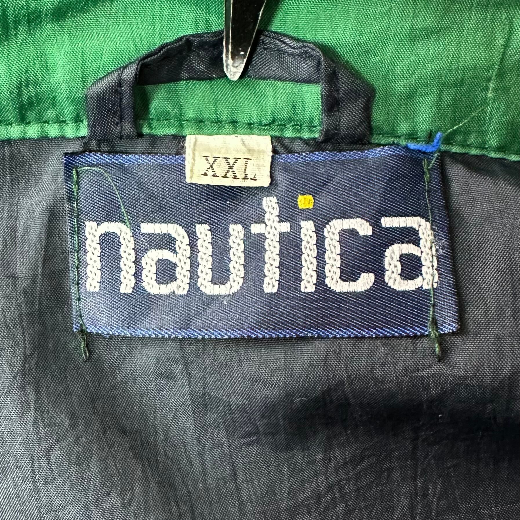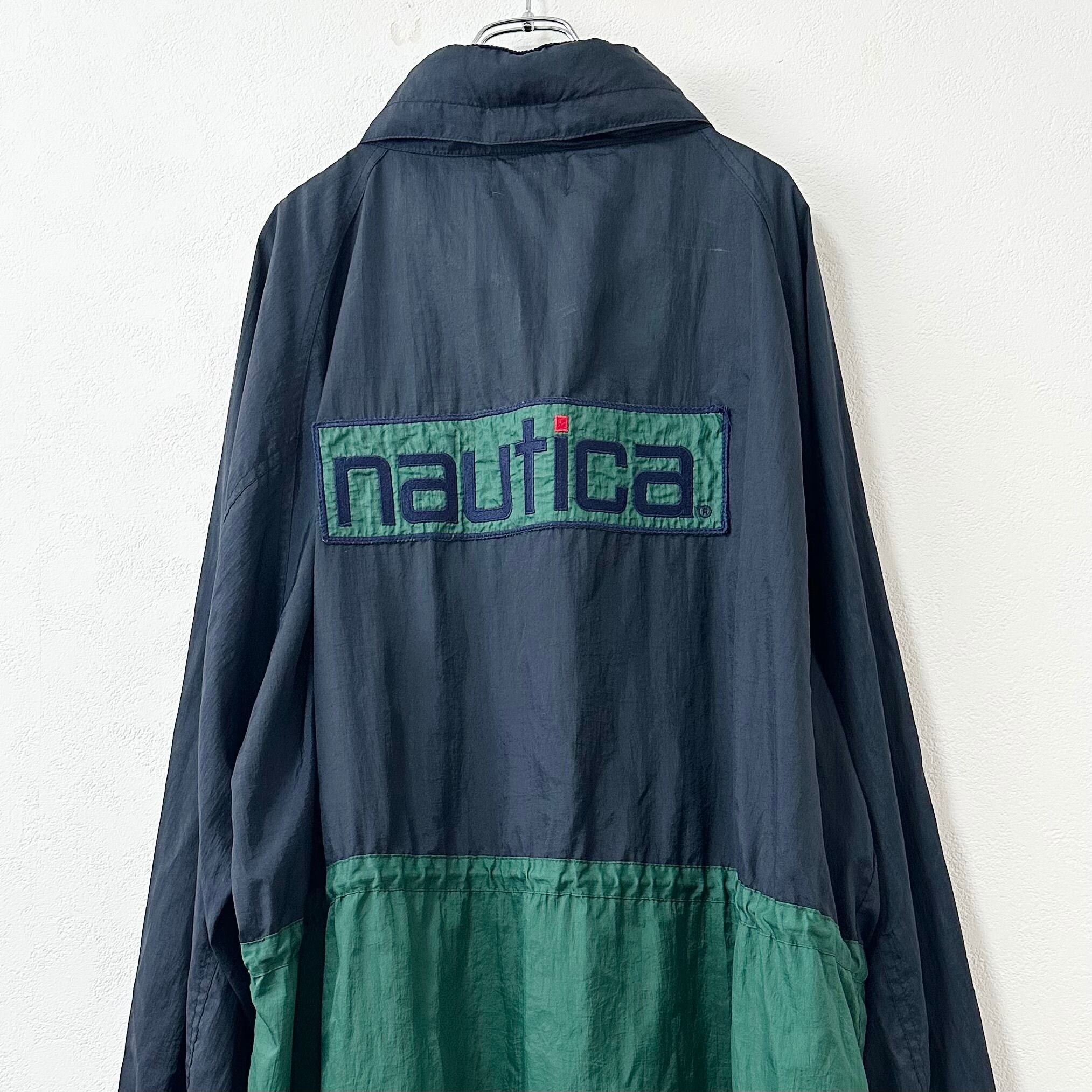 80s〜90s★nautica/ノーティカ★セーリングジャケット★薄手★春仕様★ネイビー×グリーン/紺×緑★2〜3XL相当