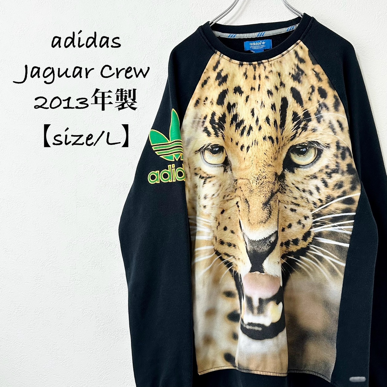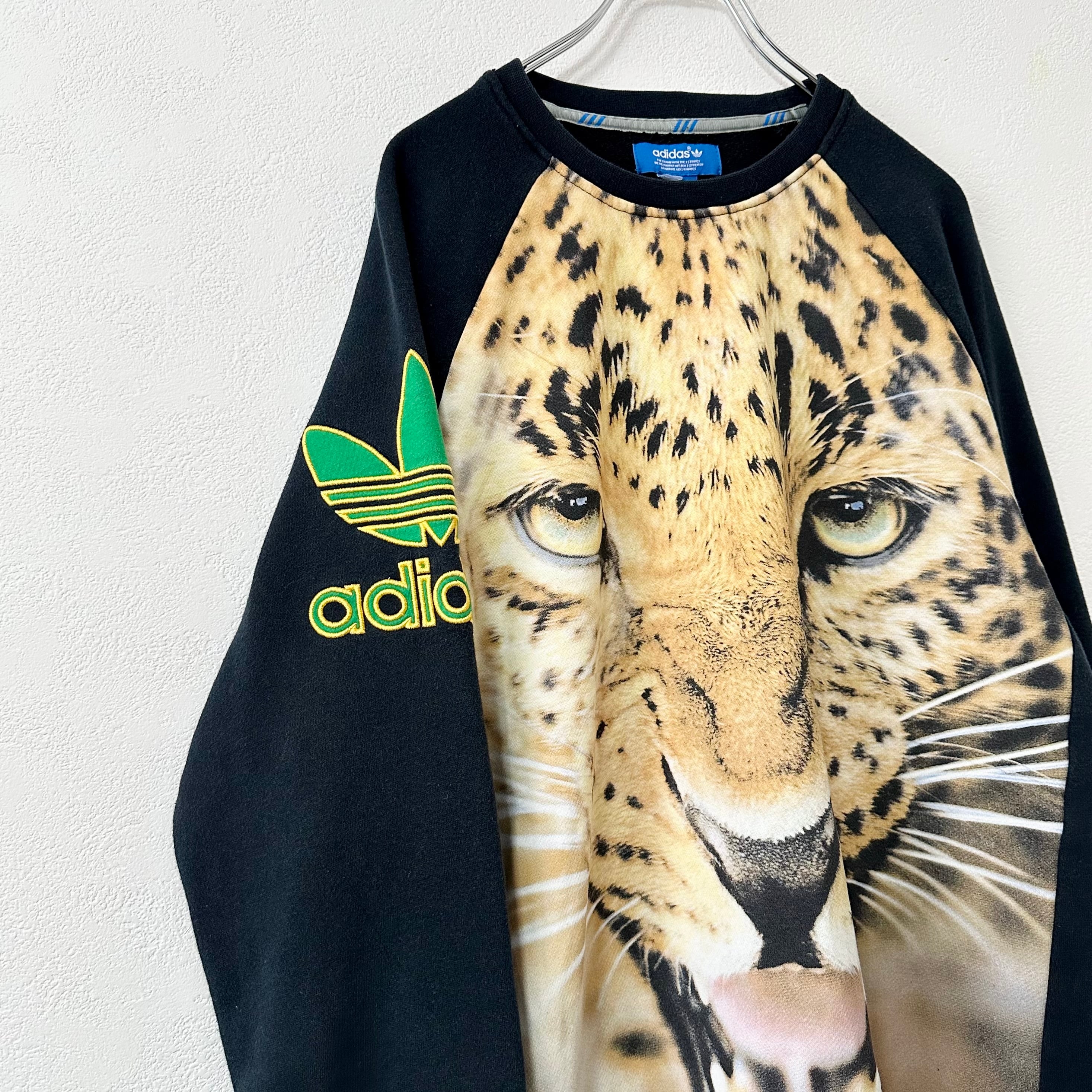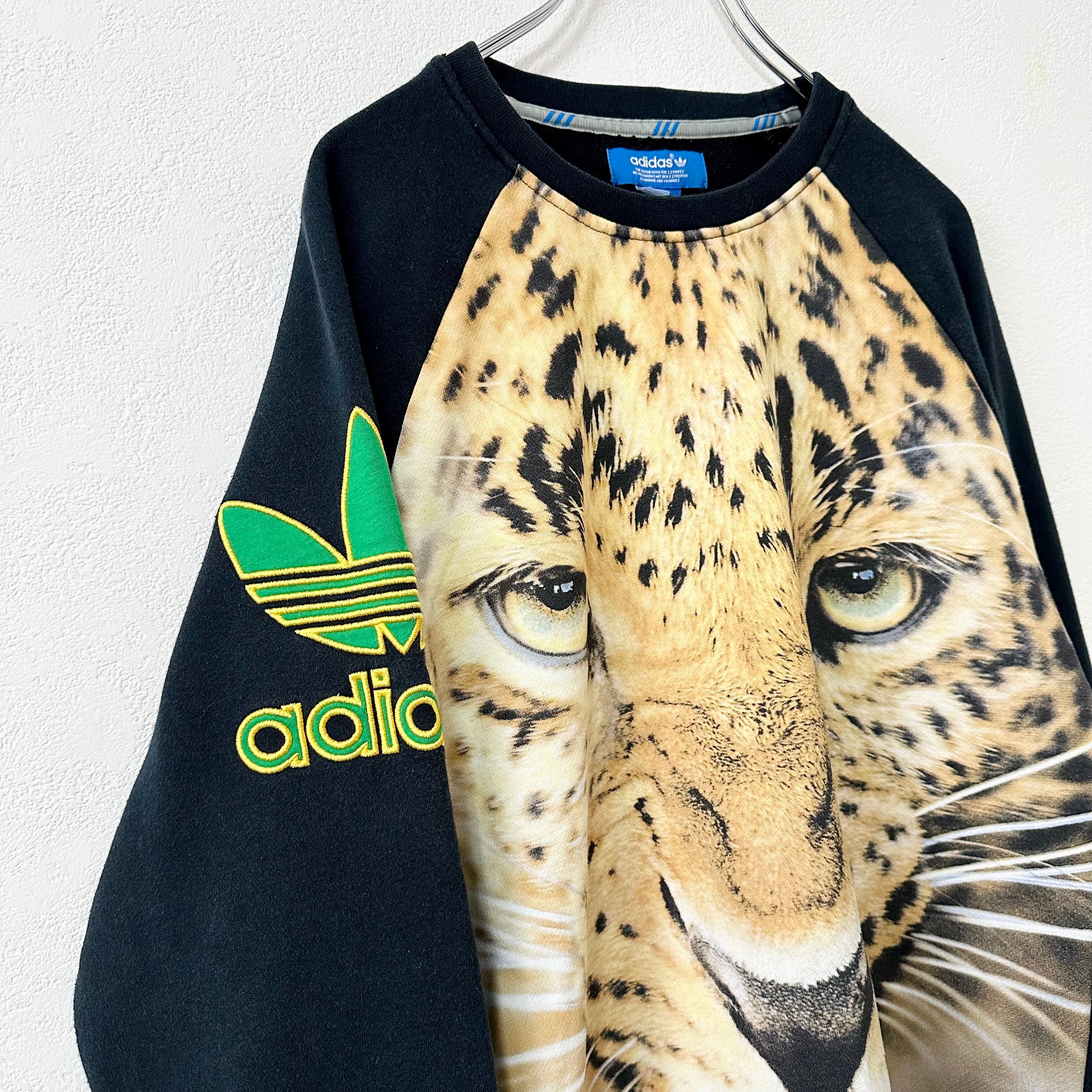adidas/アディダス★スウェット/トレーナー★ジャガー★レオパード/豹柄/ヒョウ柄★F77316★ブラック×グリーン/黒緑★L