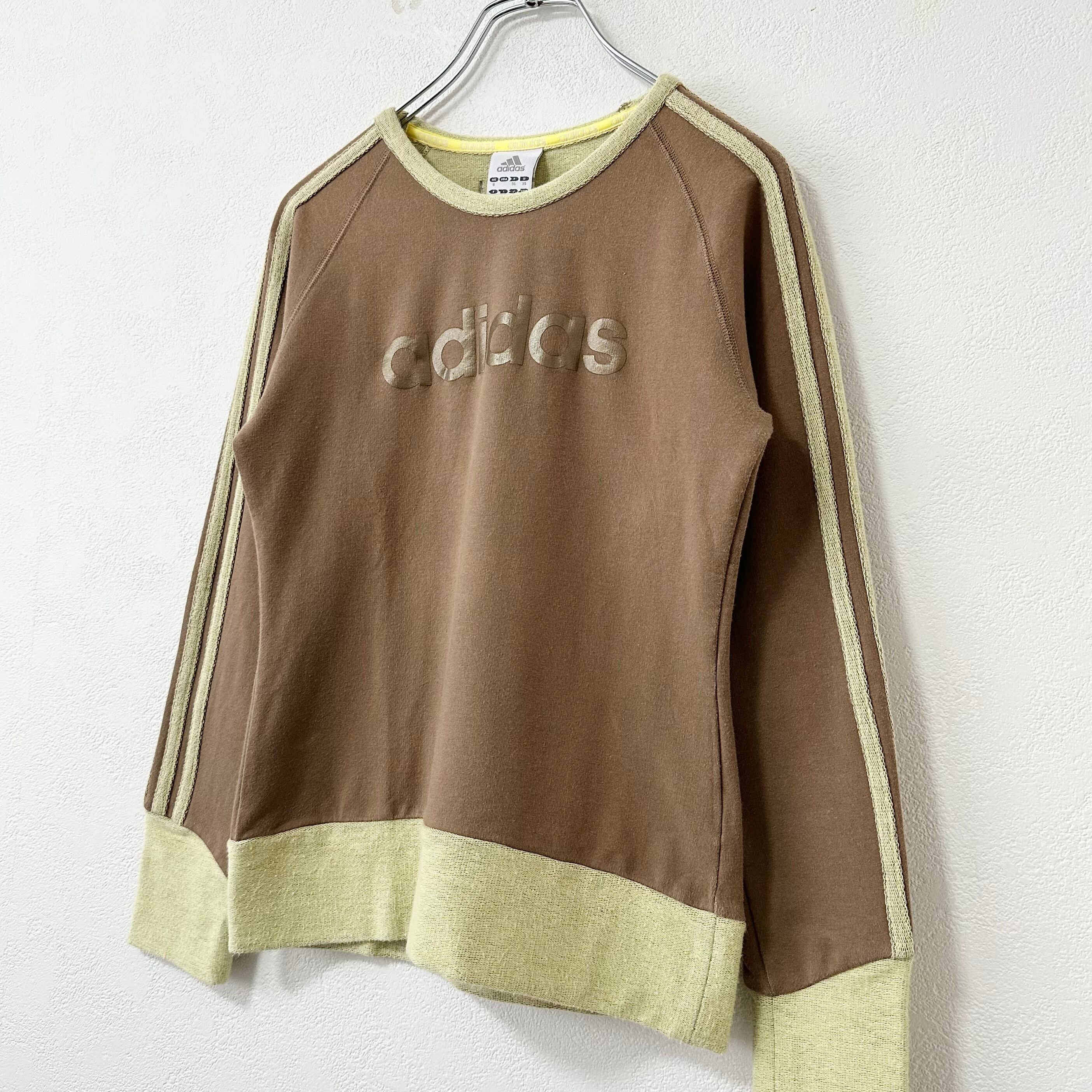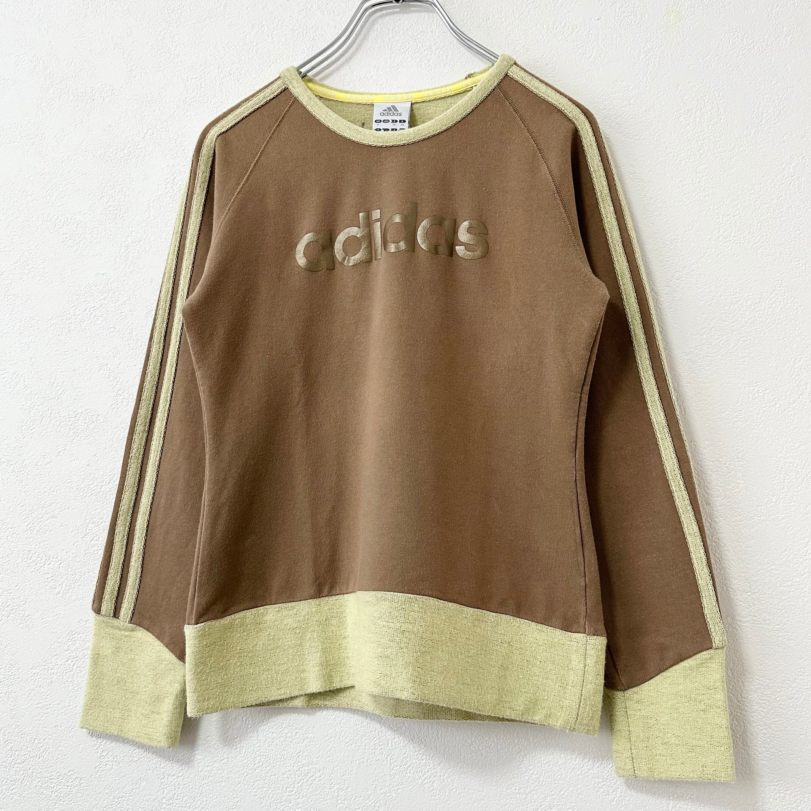 美品★00s★adidas/アディダス★スウェット/トレーナー★ブラウン/茶×ベージュ★S