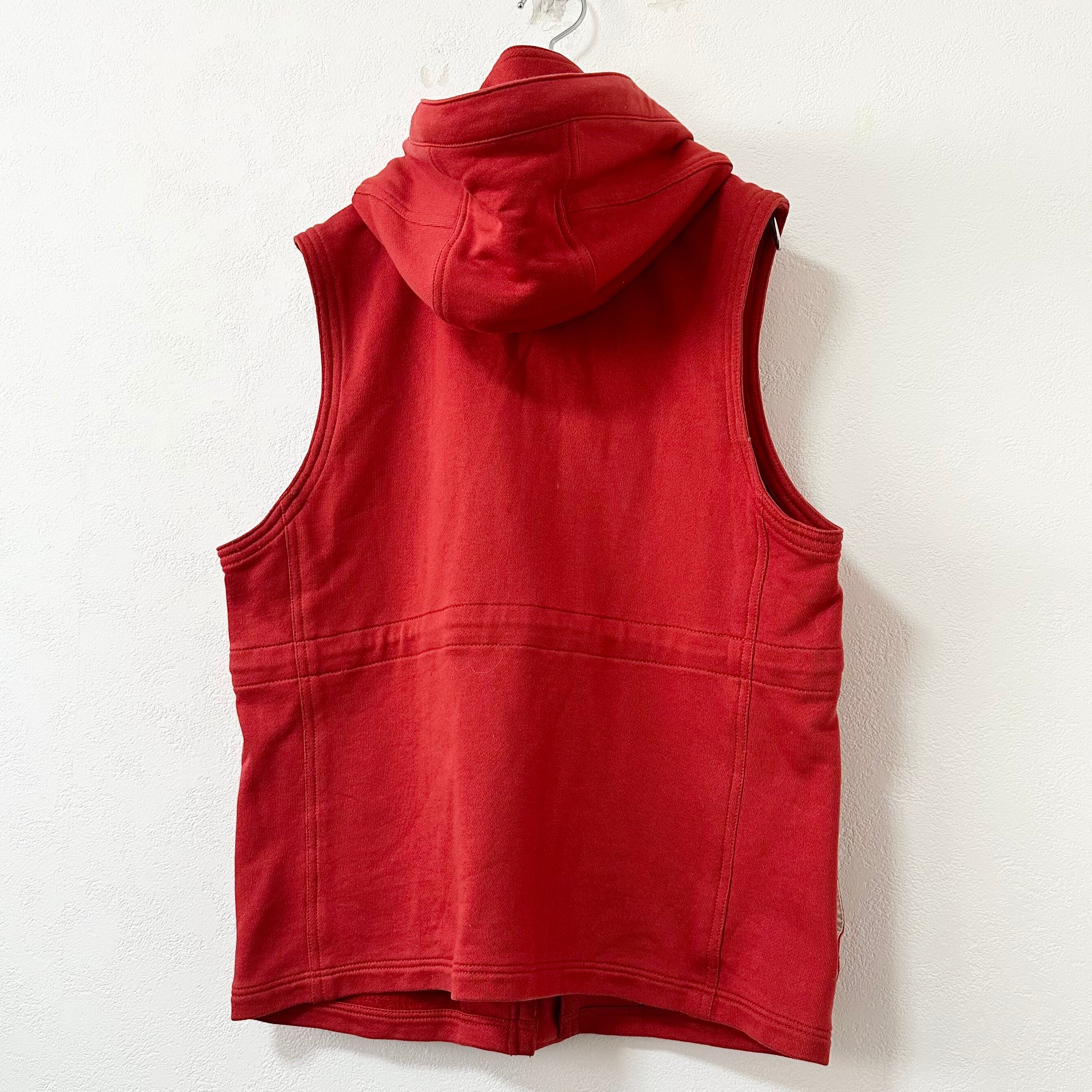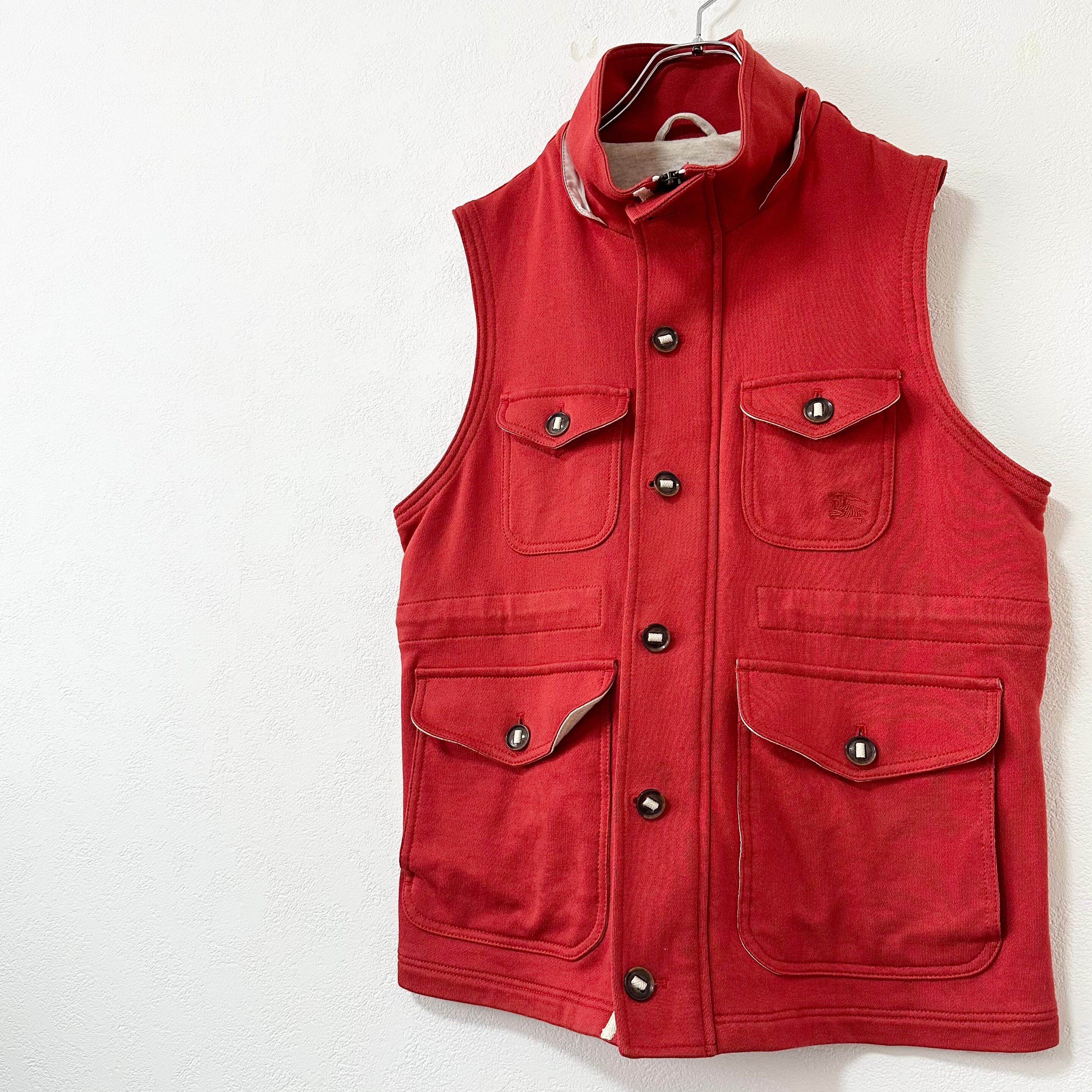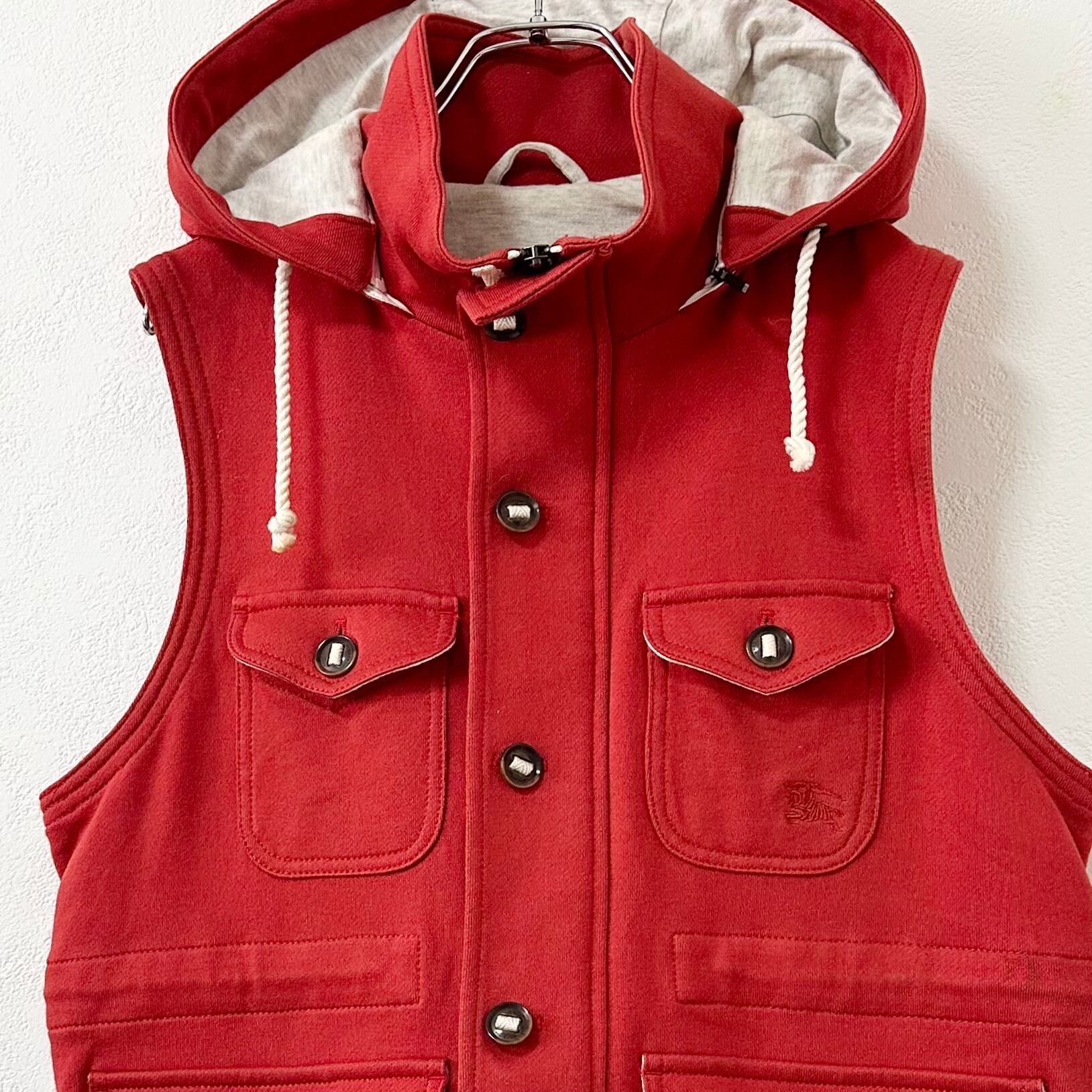 美品★BURBERRY BLACK LABEL/バーバリー ブラックレーベル★ベスト★スウェット地★フード着脱可★レッド/赤★L