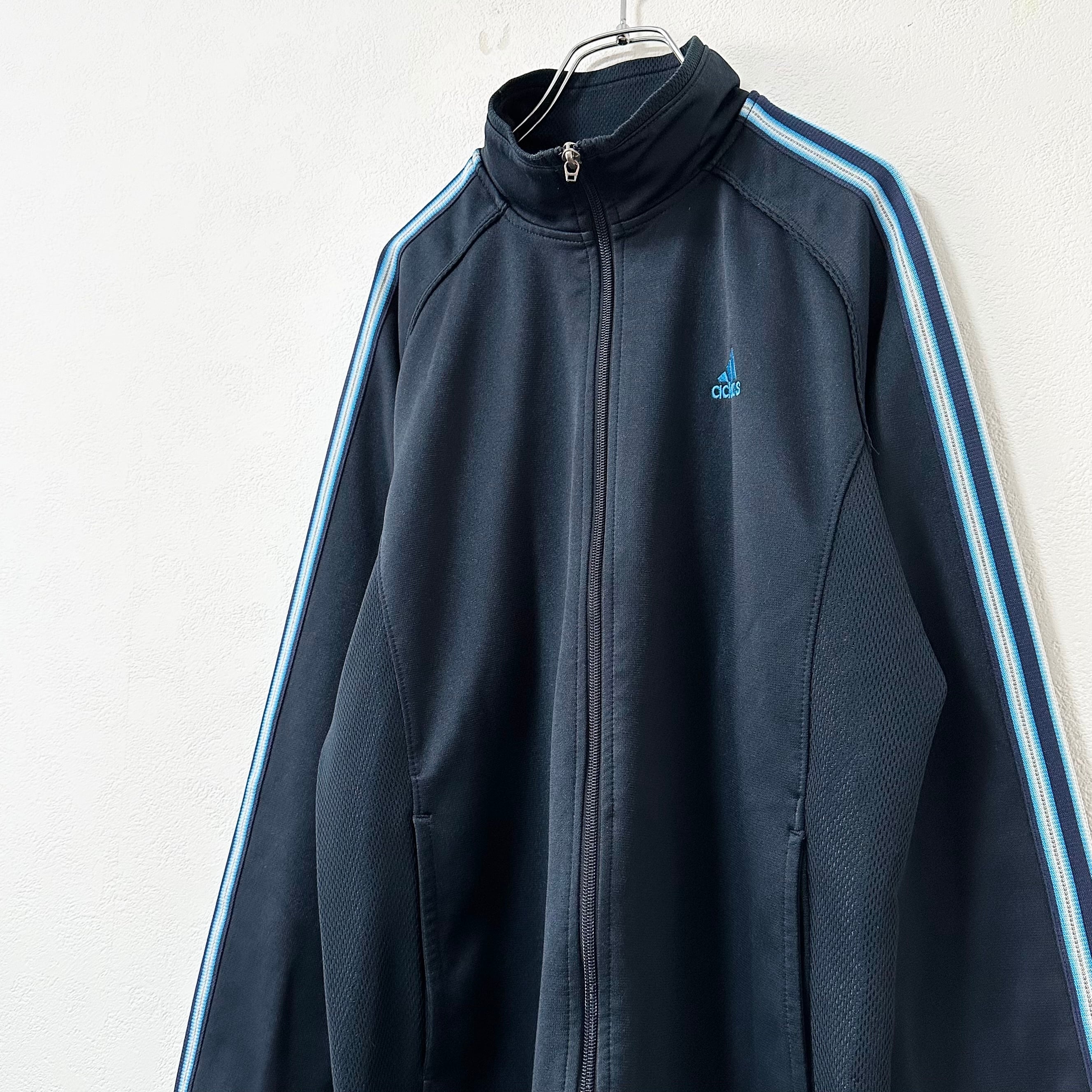 00's★adidas/アディダス★ジャージ/トラックジャケット&パンツ★上下/セットアップ★ネイビー/紺×水色★L〜XL相当