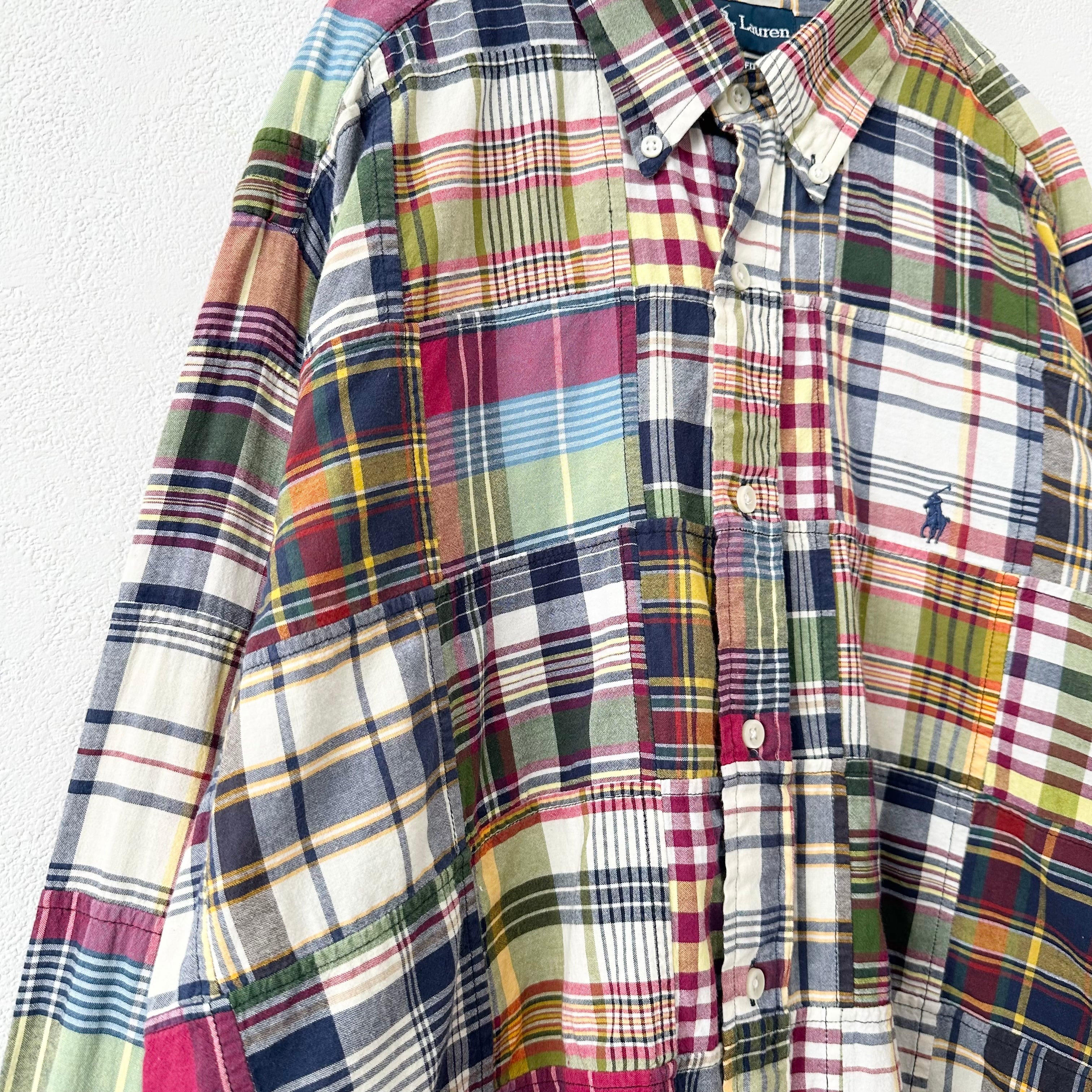 美品★90s★VINTAGE★Polo Ralph Lauren/ポロ ラルフローレン★長袖シャツ★チェック★パッチワーク★XL